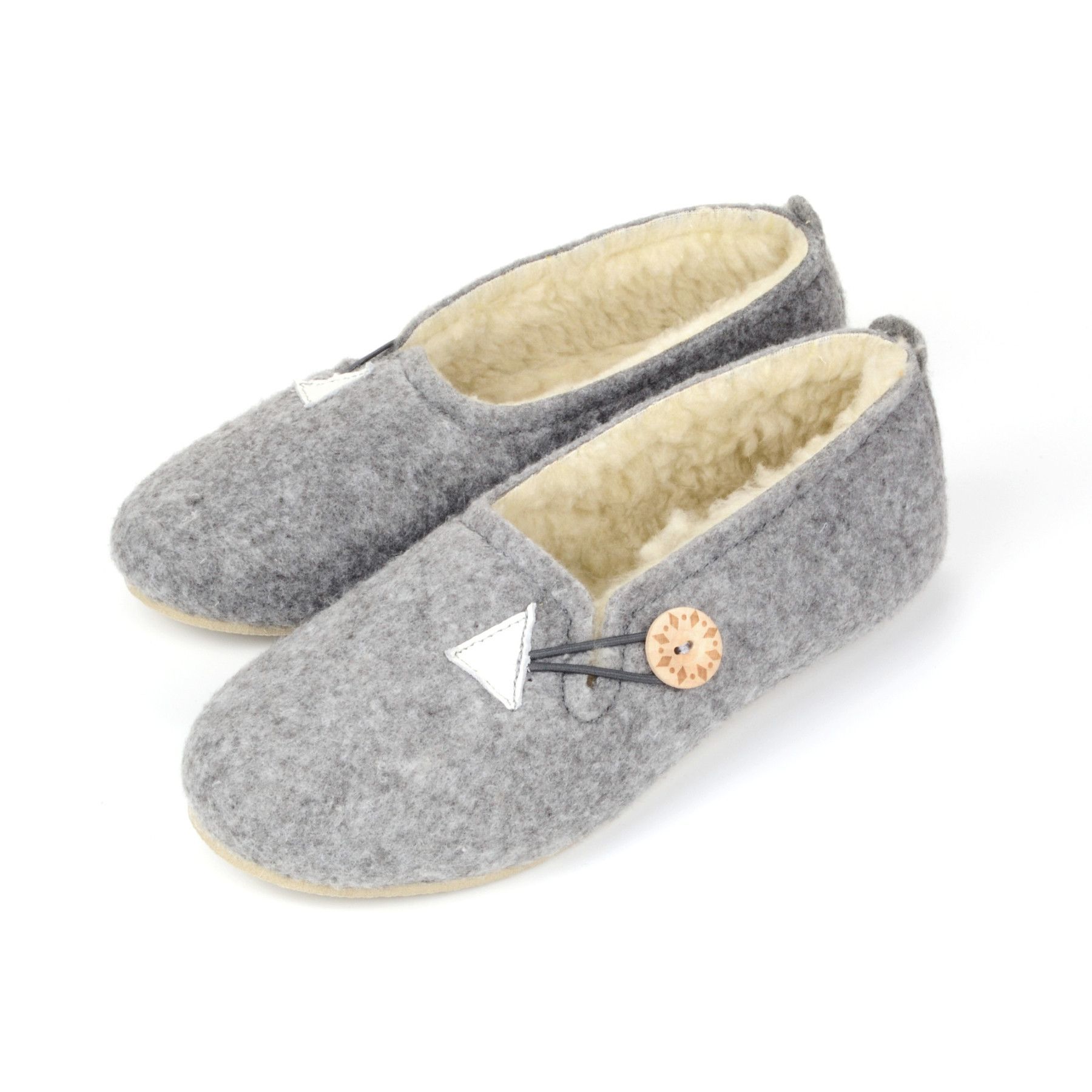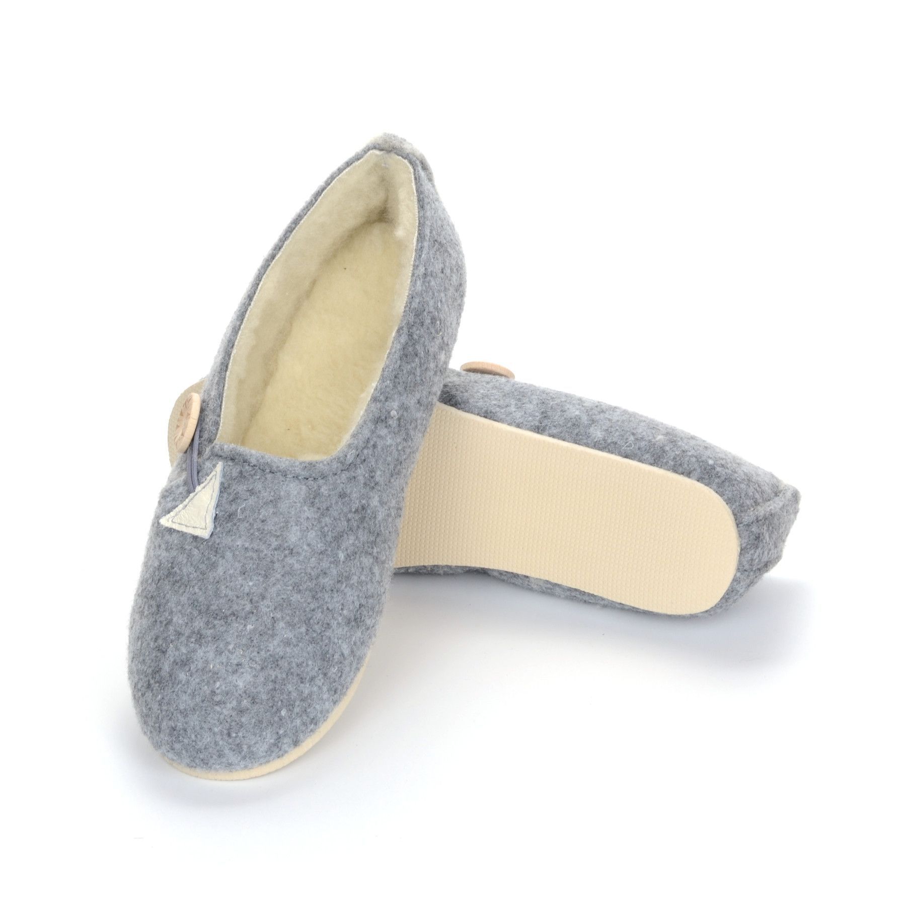 Damen Hausschuhe Warme Winter Lammfell Comfort Bequeme Leder Grau Filzpantoffeln