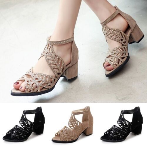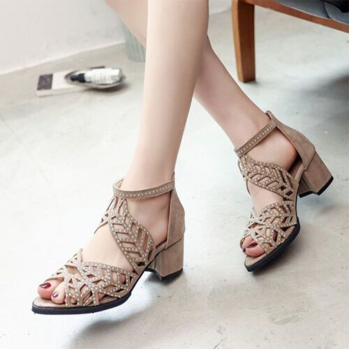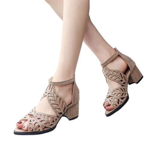 Damen Heeled Sandale Ausgeschnitten Frauen Kompfort Formell Peep Toe Schuhe