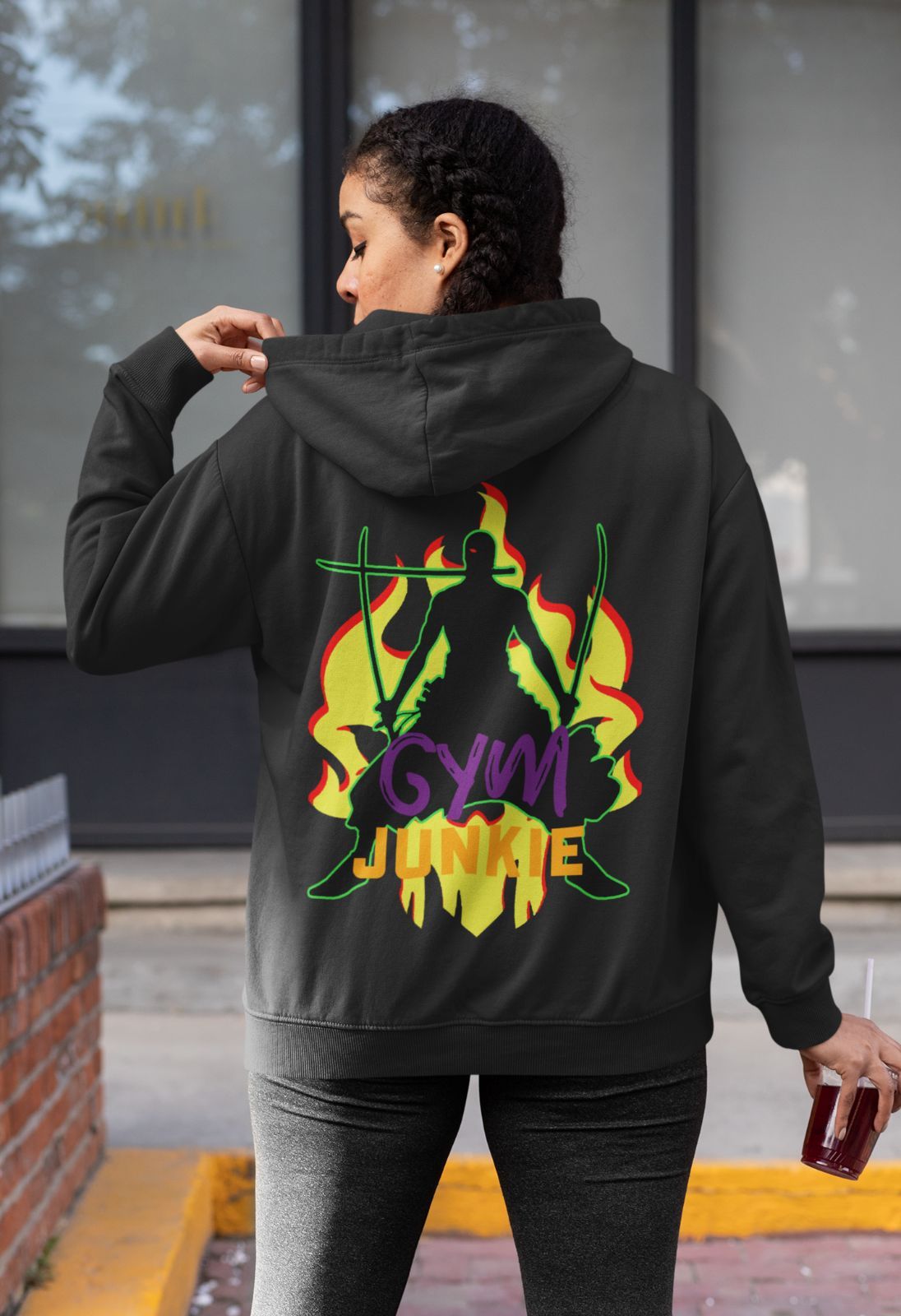 Damen Hoodie Kapuzenpullover One Piece Lorenor Zorro Gym Junkie Sport