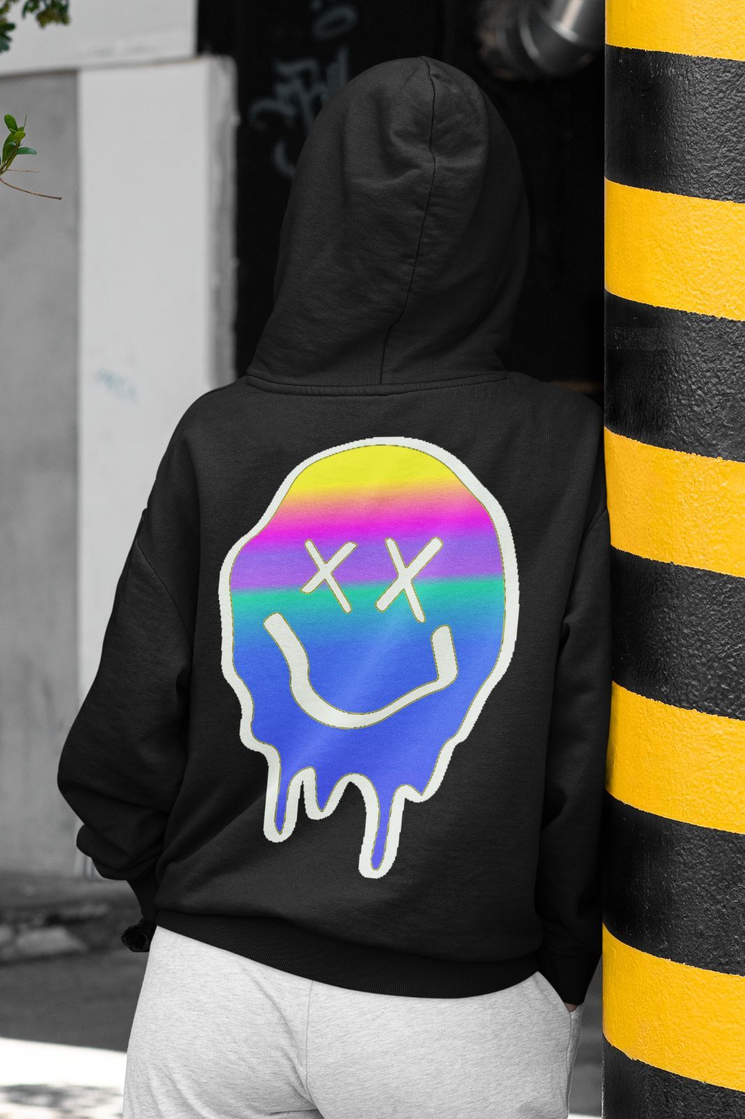 Damen Hoodie Kapuzenpullover Schmelzender Smiley Glücklich Crazy Smail Hip hop