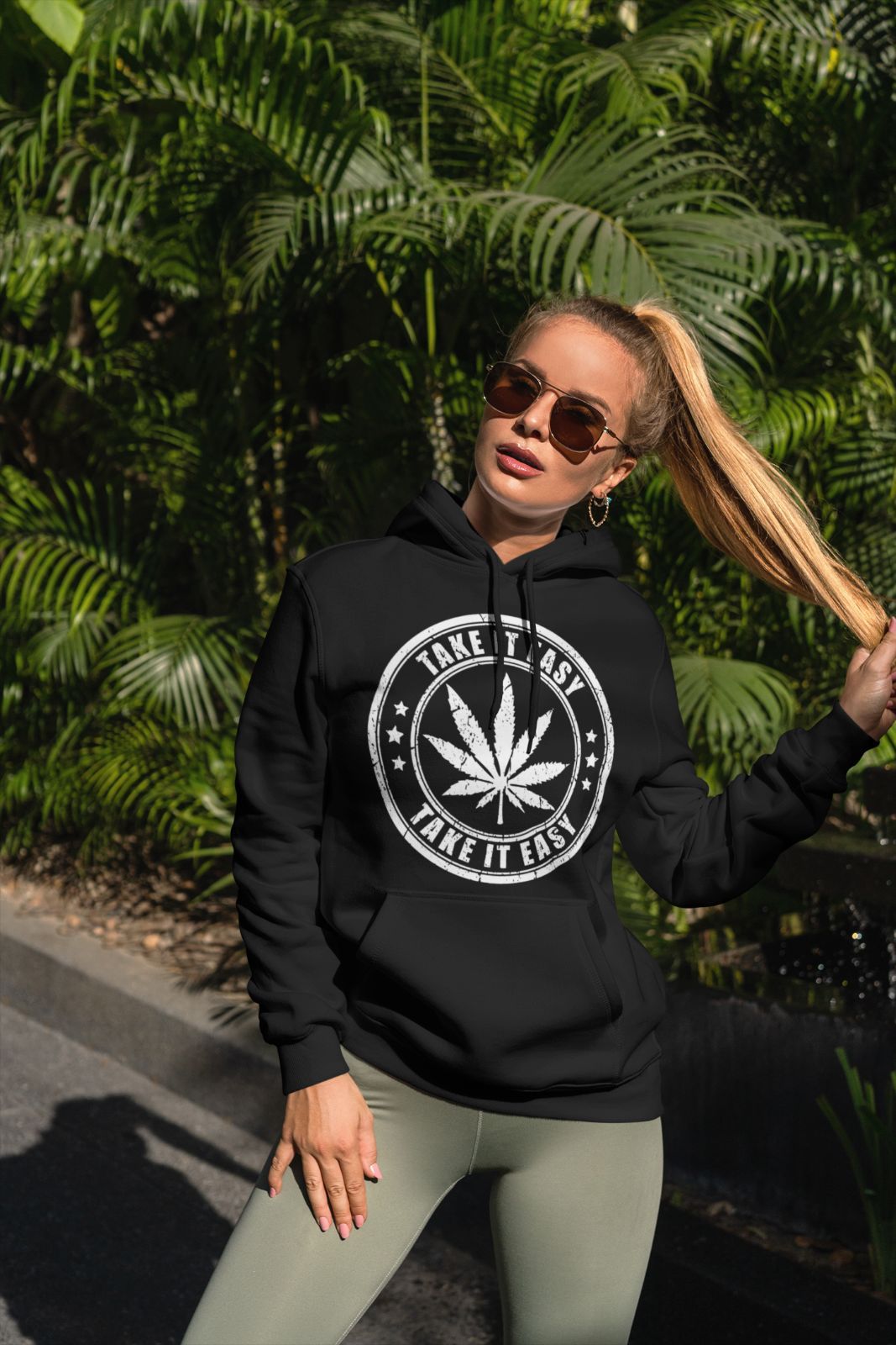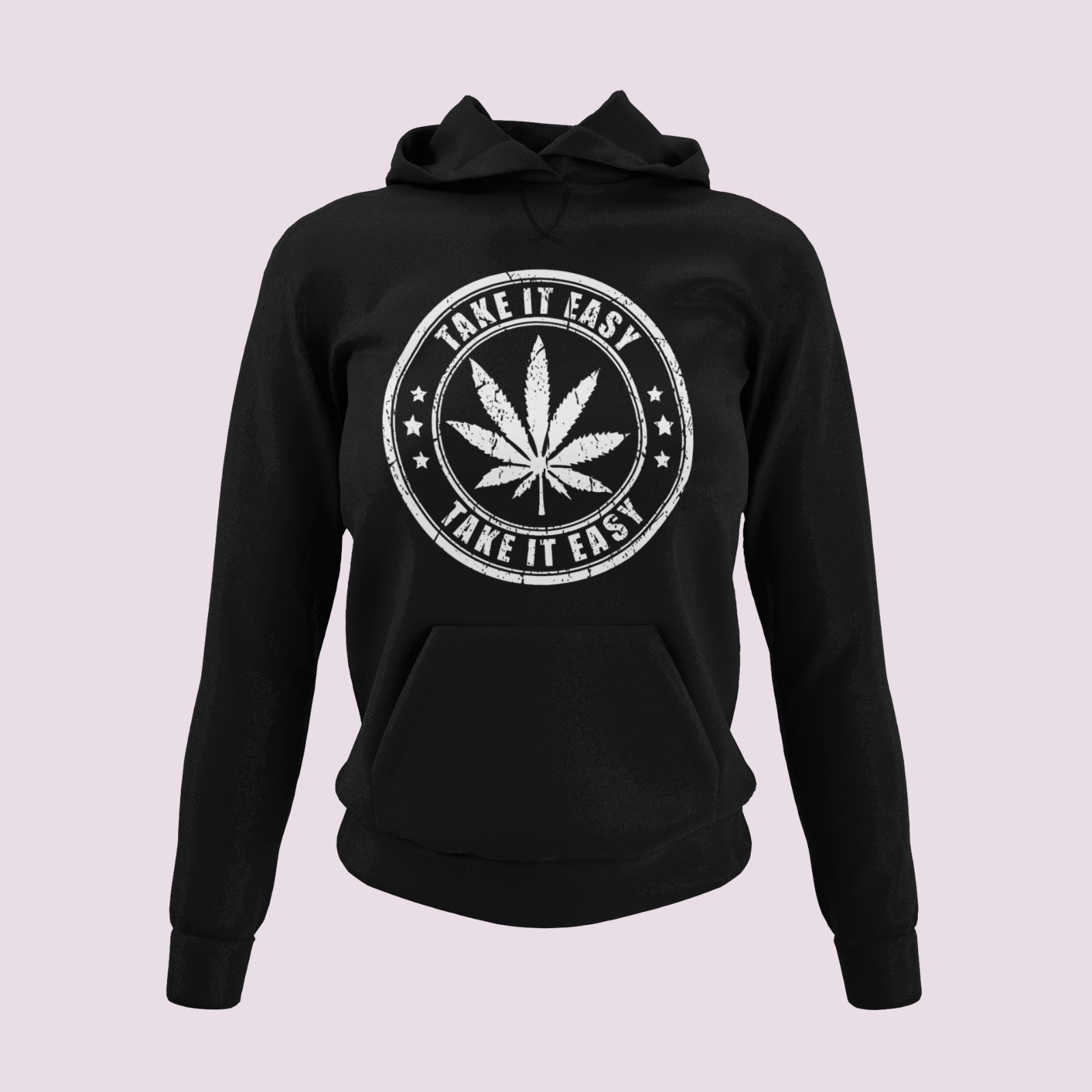 Damen Hoodie Kapuzenpullover Take It Easy Kiffer Weed Cannabis Blatt Zeichen