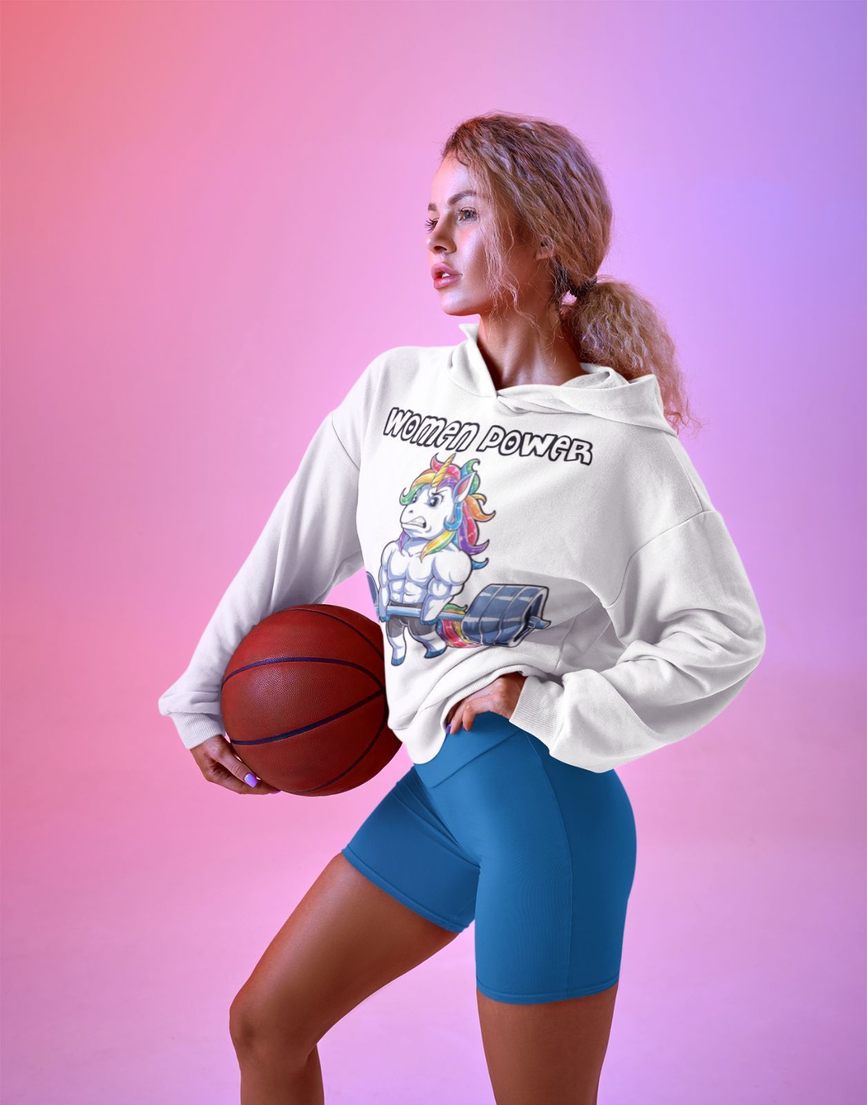 Damen Hoodie Kapuzenpullover Unicorn Gym Women Power Trainings Fitness Sport