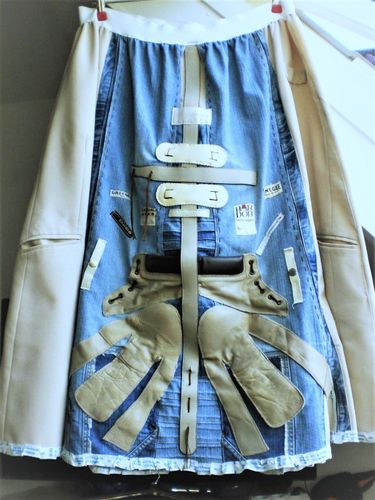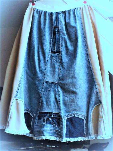 Damen Jeans Rock Blau-Beige-Braun-Weiß passt bei Gr.48-50-52-54 mit Gummiband Taillenweite:92-110cm Hüftweite:176cm Länge:82cm Privatverkauf.Keine Garantie und keine Rücknahme.
