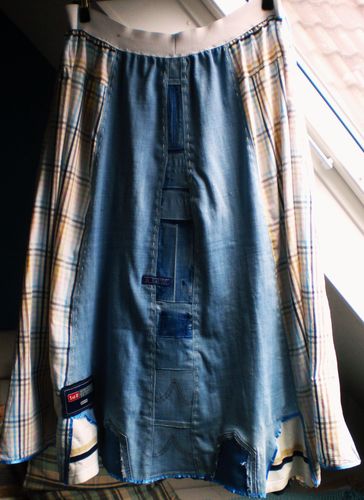 Damen Jeans Rock Blau-Beige-Weiß Gr.50-52-54-56 Einzelexemplar!