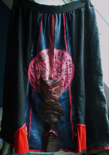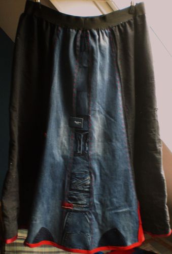 Damen Jeans Rock Blau-Schwarz-Rot Gr.50-52-54-56 Einzelexemplar!