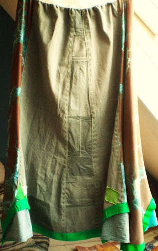 Damen Jeans Rock Grün-Türkis-Braun-Weiß passt bei Gr.46-48-50-52 mit Gummiband Taillenweite:88-106cm Hüftweite:140m Länge:88cm Privatverkauf.Keine Garantie und keine Rücknahme.