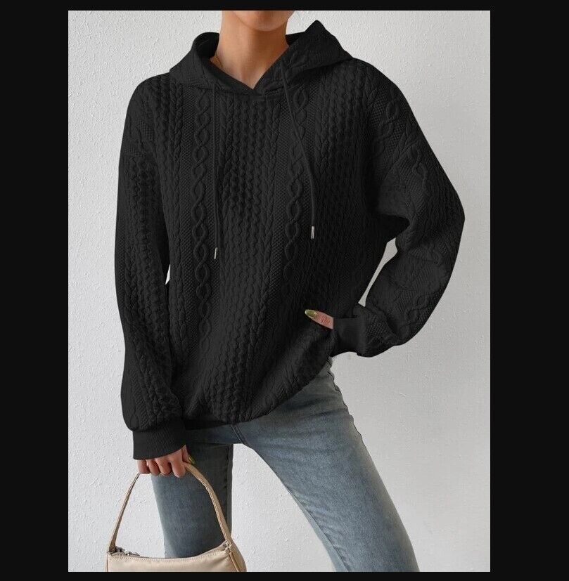 Damen Kapuzenpullover mit Kapuze lockerer Schnitt lassig lang Sweatshirt armel NEU