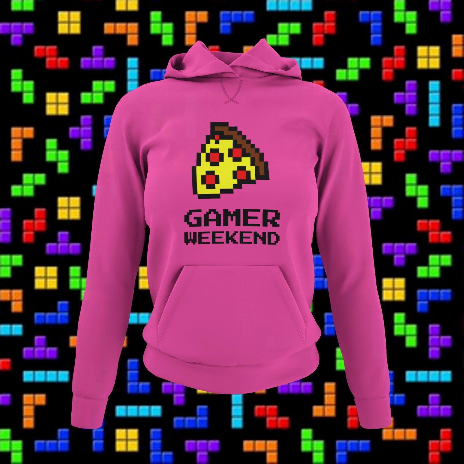 Damen Kapuzenpullover Oldschool Love Retro Gaming Weekend Pixel Pizza
