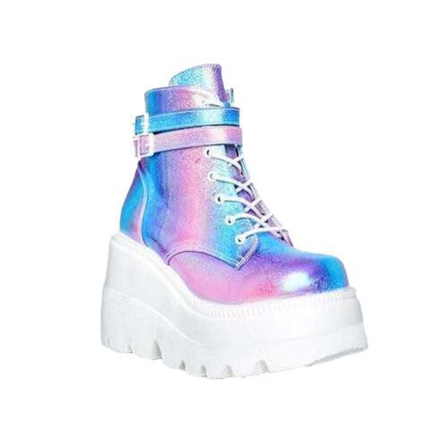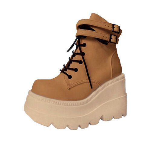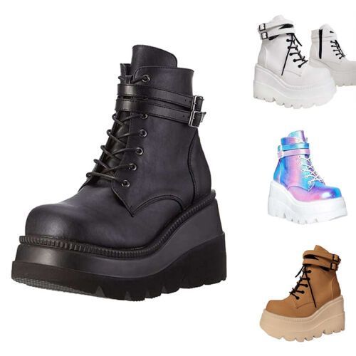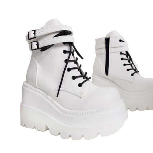 Damen Keilabsatz Plateau Muffin Schuhe hohe Top Turnschuhe Freizeitschuhe Stiefel Sch