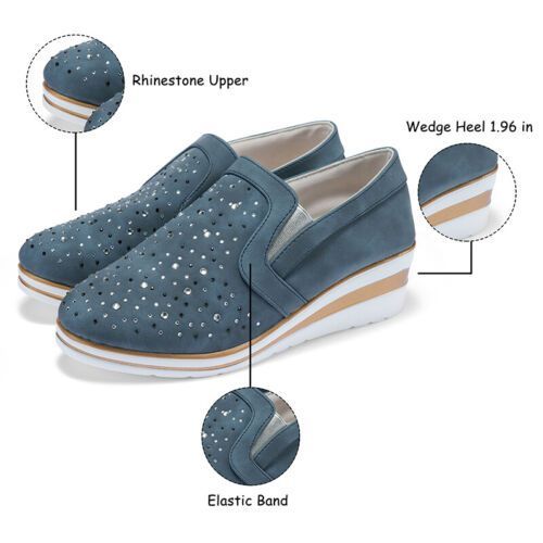 Damen Keile Schlupfen Ladung Frauen Atmungsaktiv Draussen Strass Turnschuhe