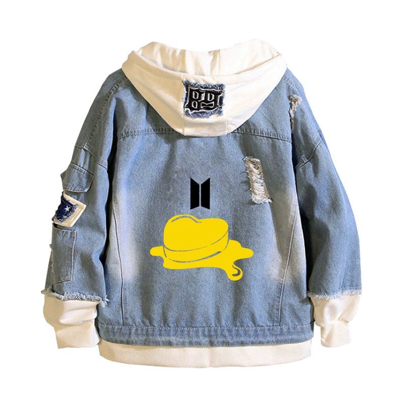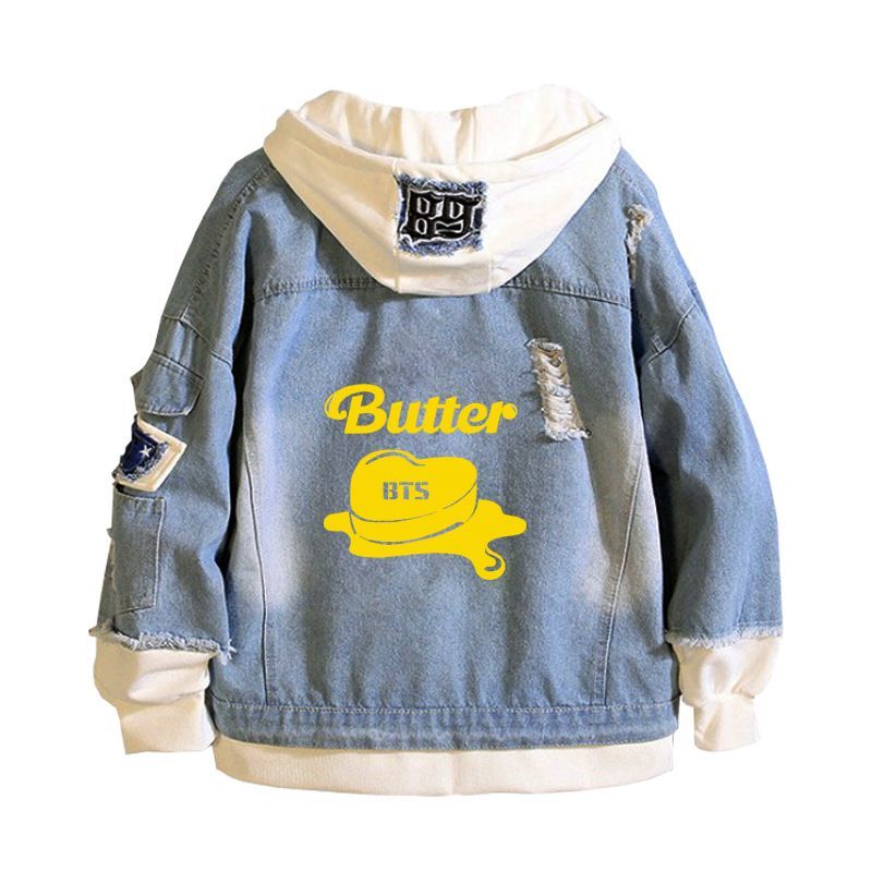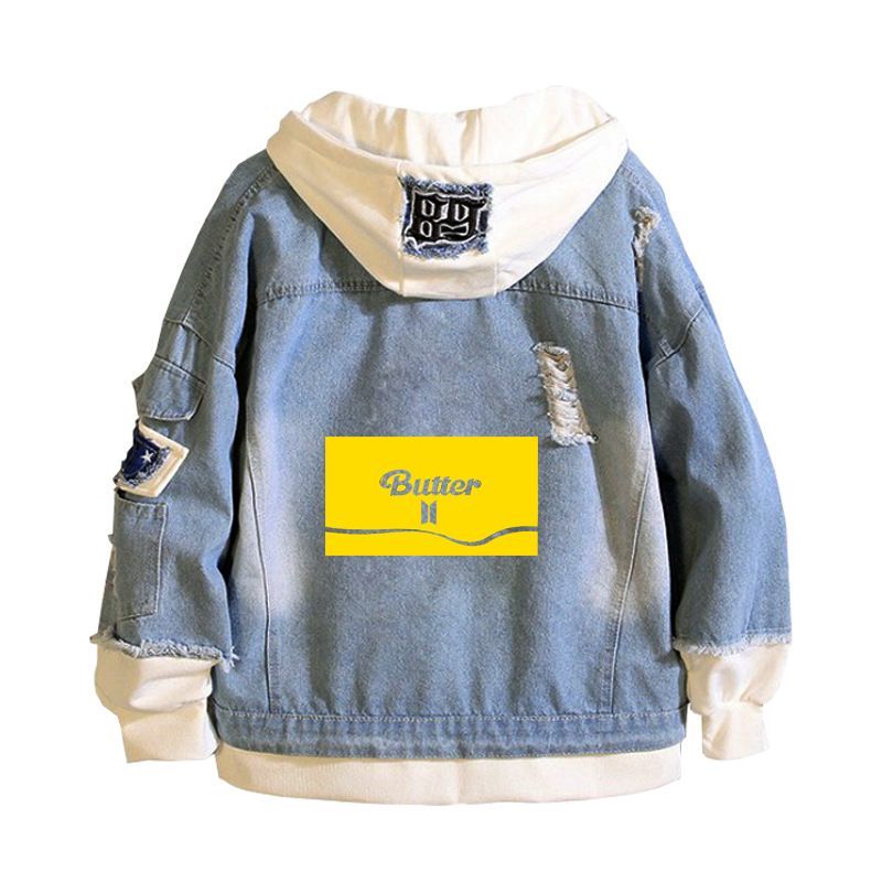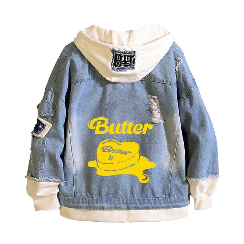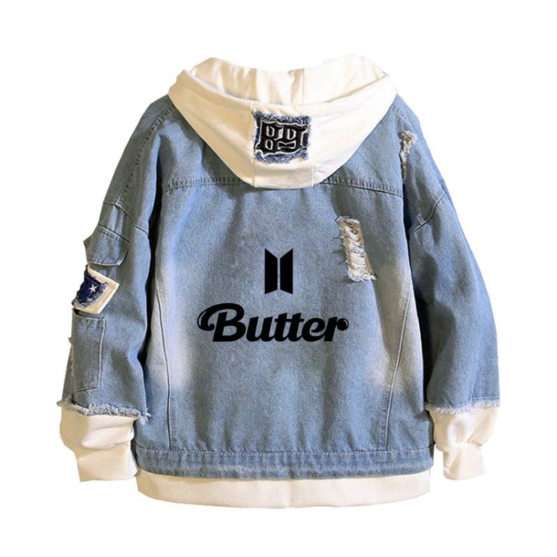 Damen Kpop BTS Butter Kapuze J-hope V Jung Kook Jeansjacke Mantel Sweatshirt