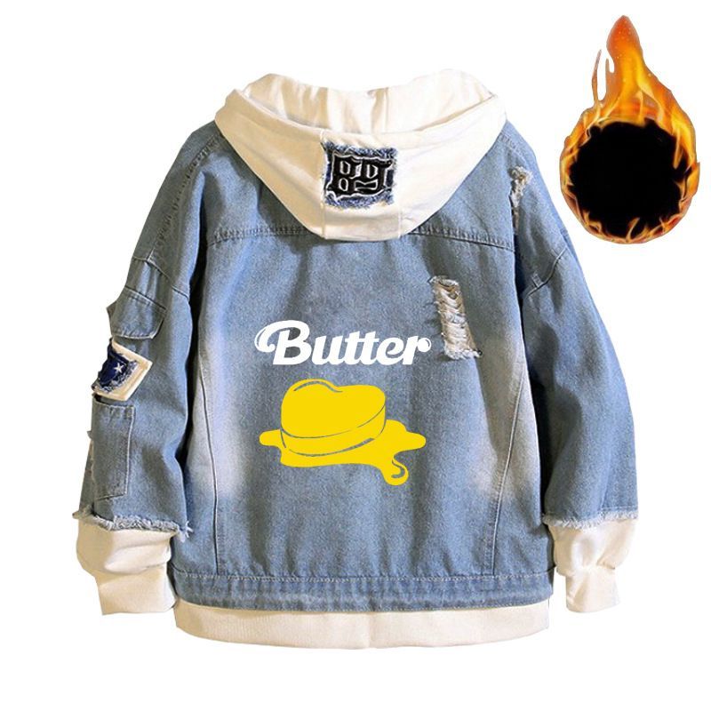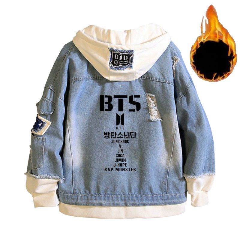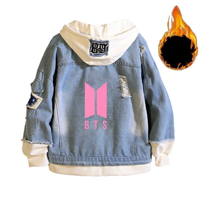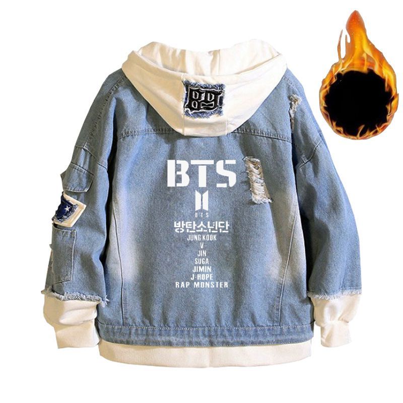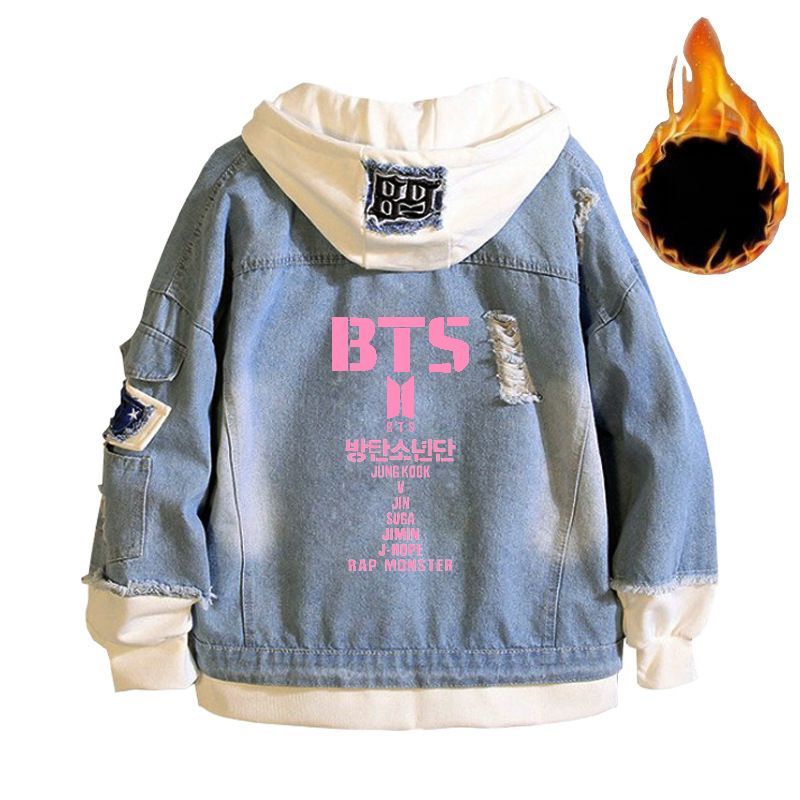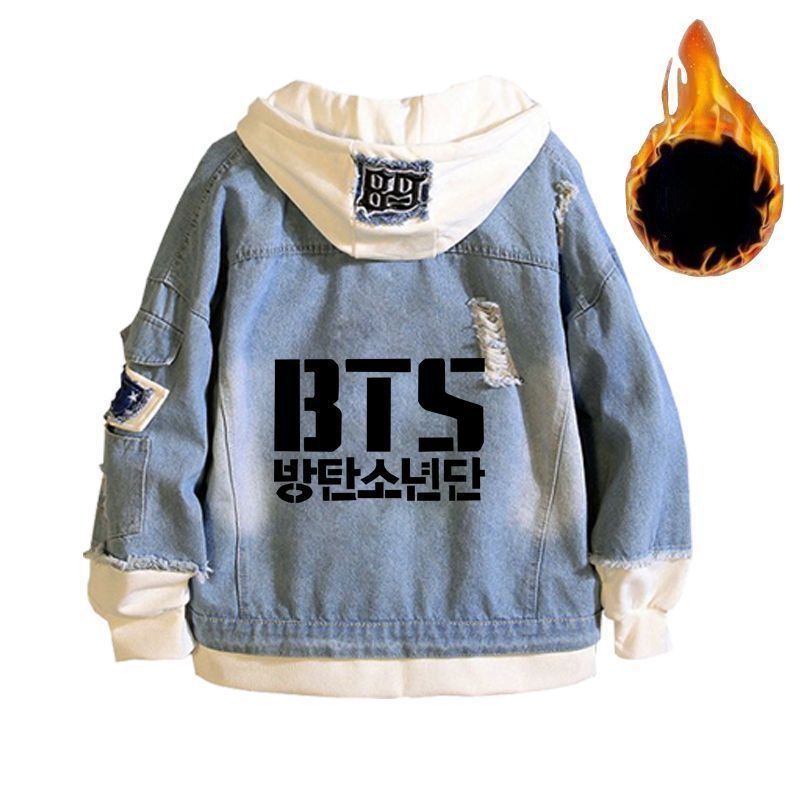 Damen Kpop BTS Kapuze Plüsch-Jeansjacke Jimin J-hope Hoodie Mantel Sweatshirt
