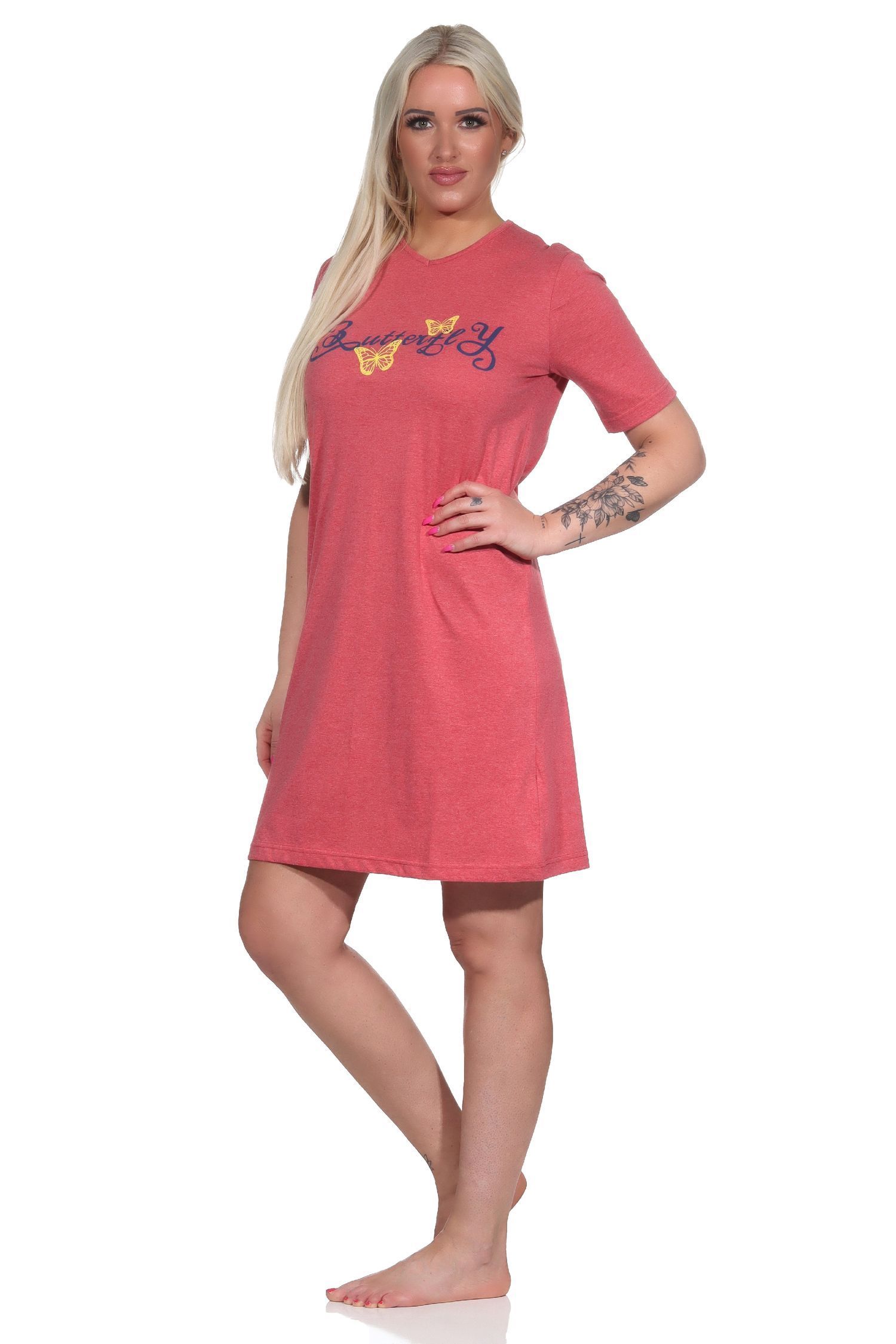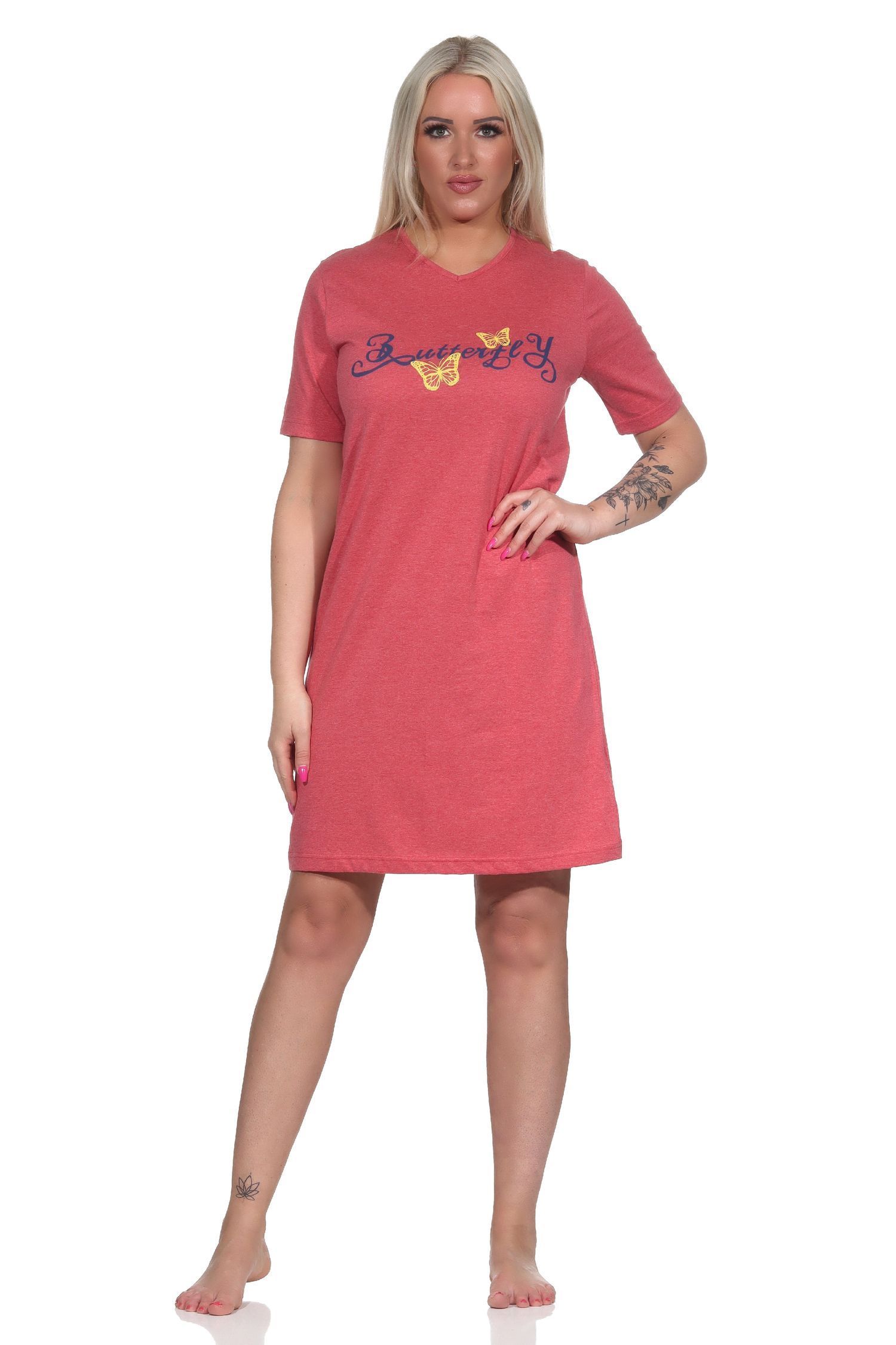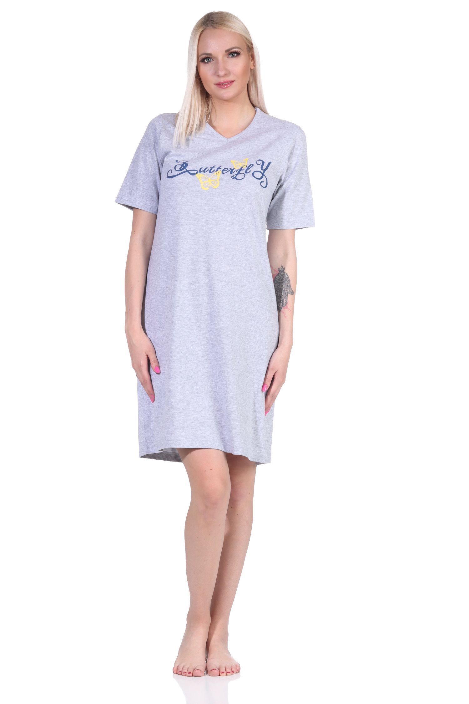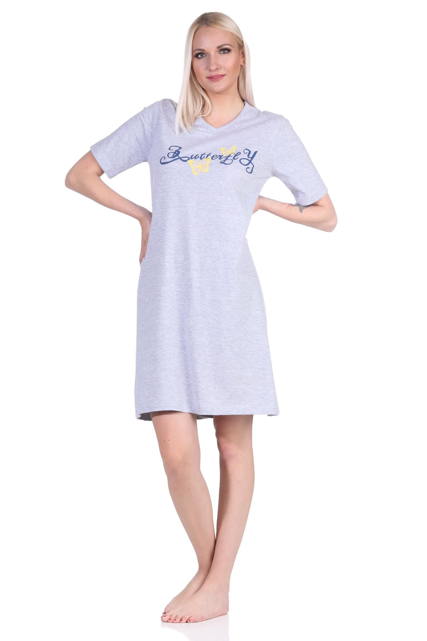 Damen kurzarm Nachthemd mit Schmetterling als Motiv - auch in Übergrössen
