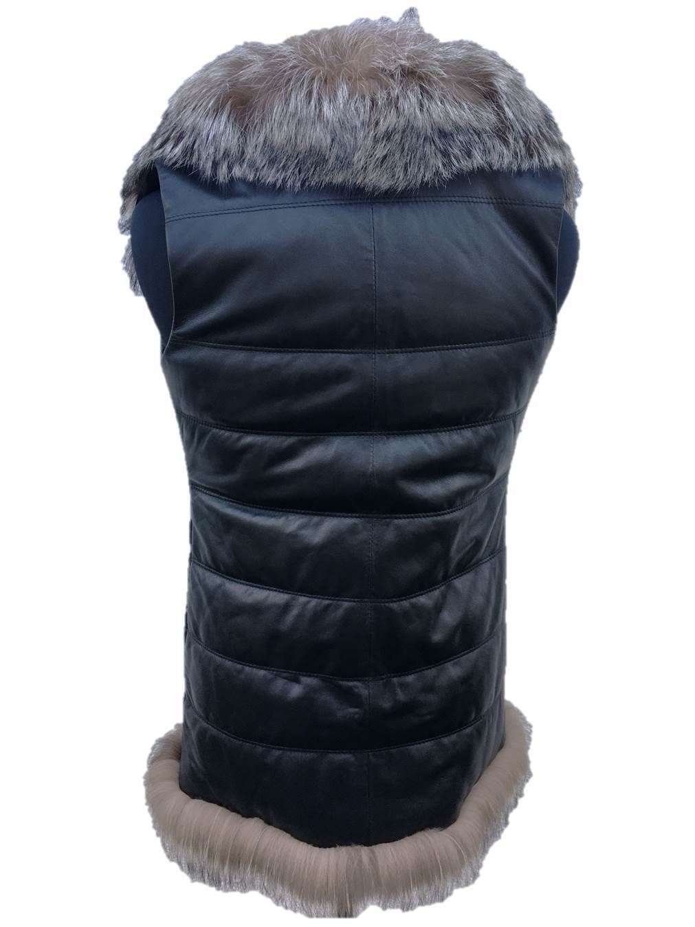 Damen Lammfellweste Lederweste Schaffell Fellweste Lammfell Weste schwarz-2