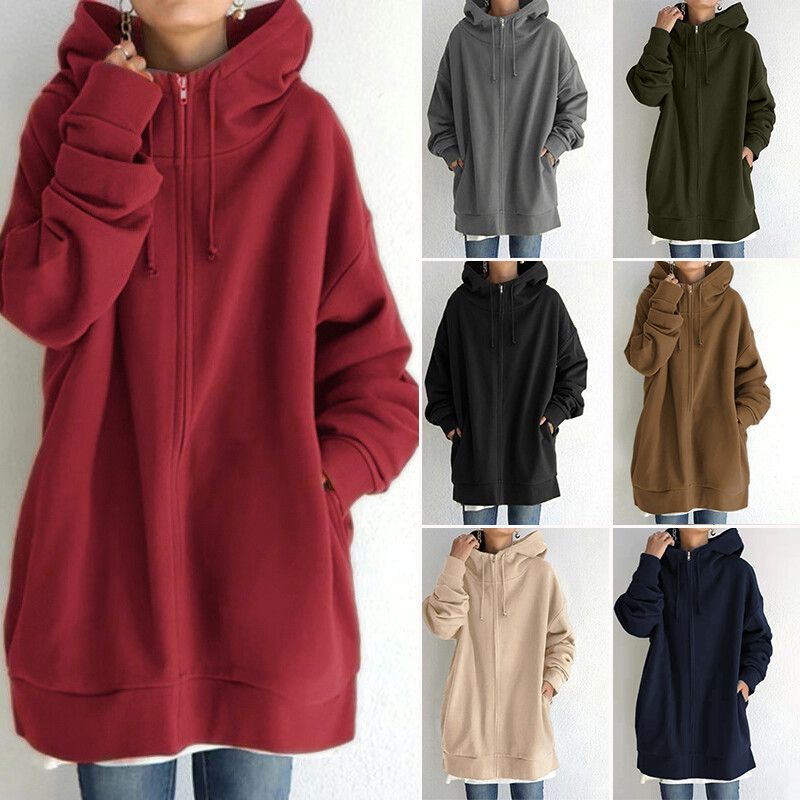 Damen Langarm Zip Up Hoodie Tops Womens Casual Baggy Kapuzen Sweatshirt Mantel