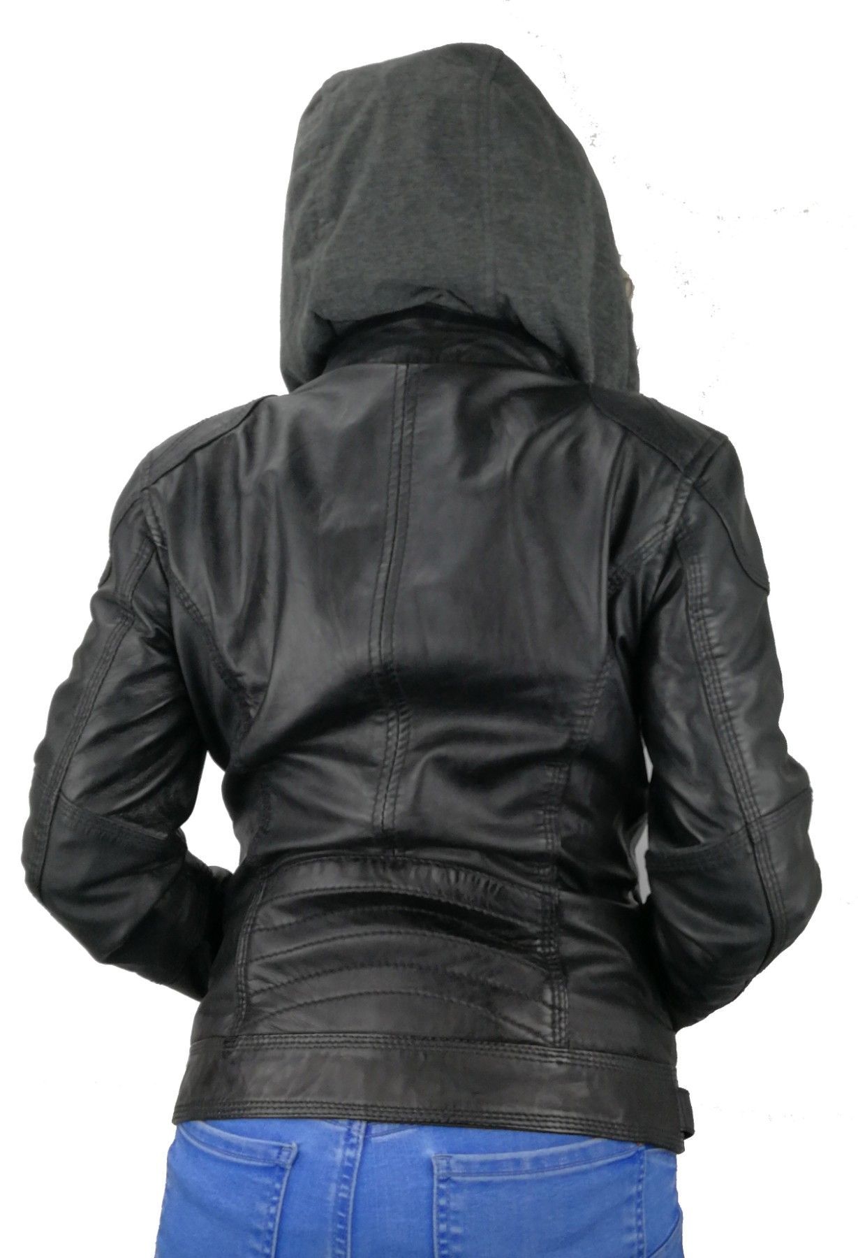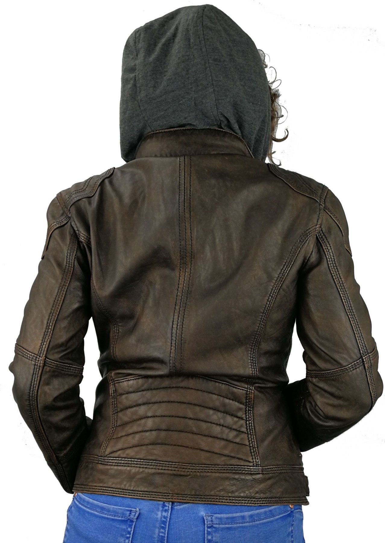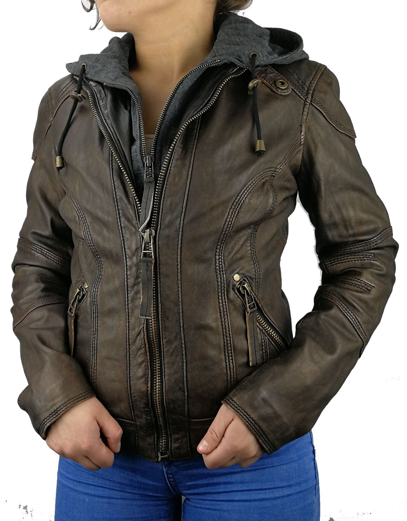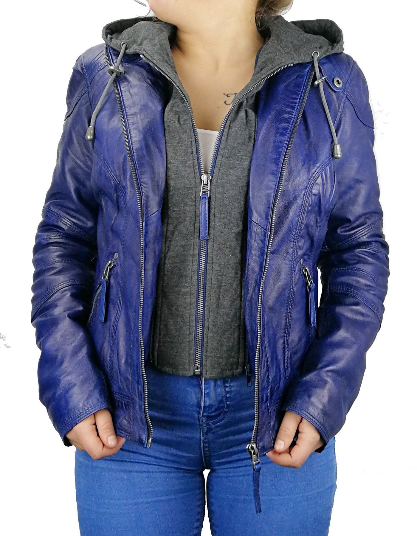 Ricano Damen Lederjacke "Heike" mit abnehmbarer Kapuze aus Lamm Nappa Leder