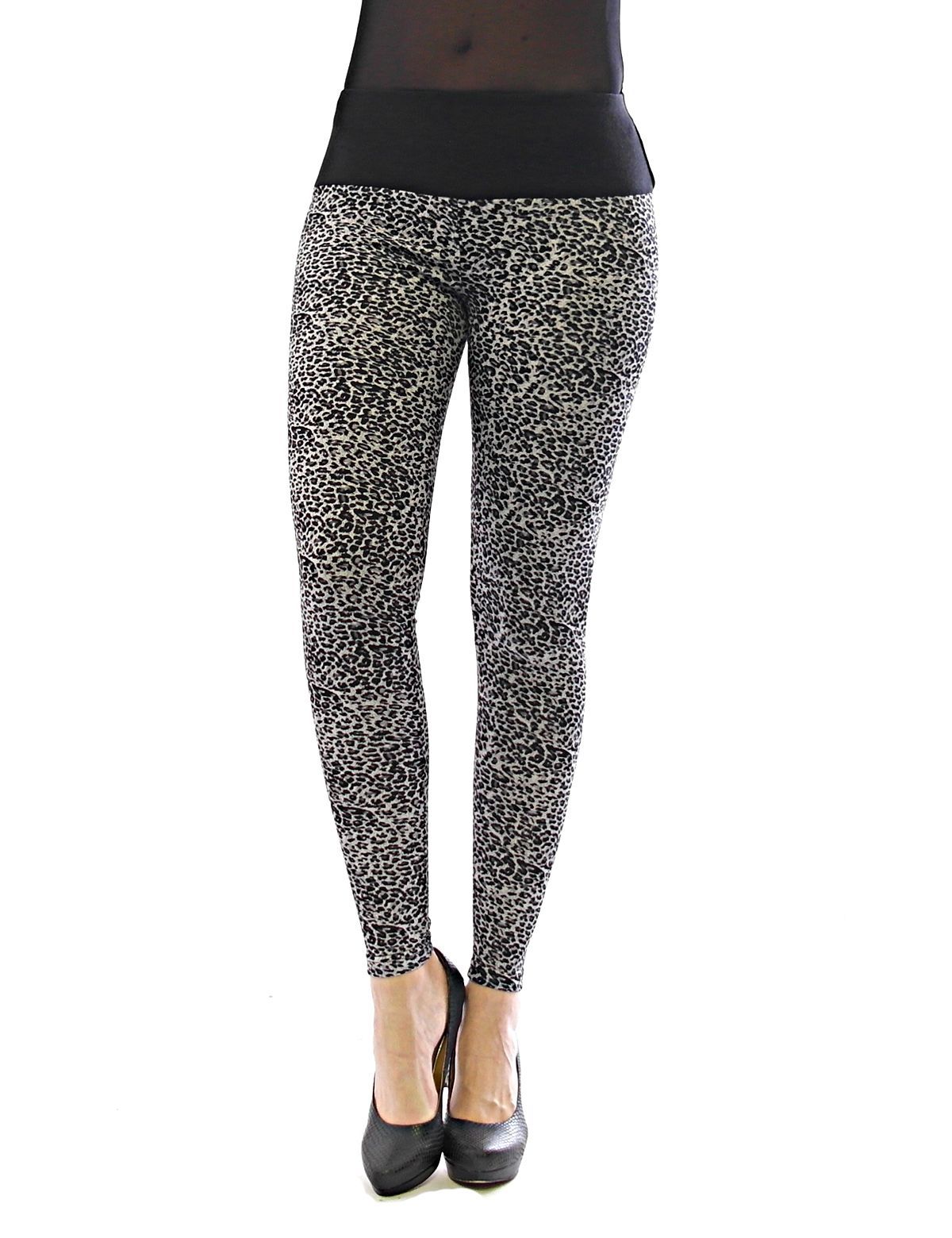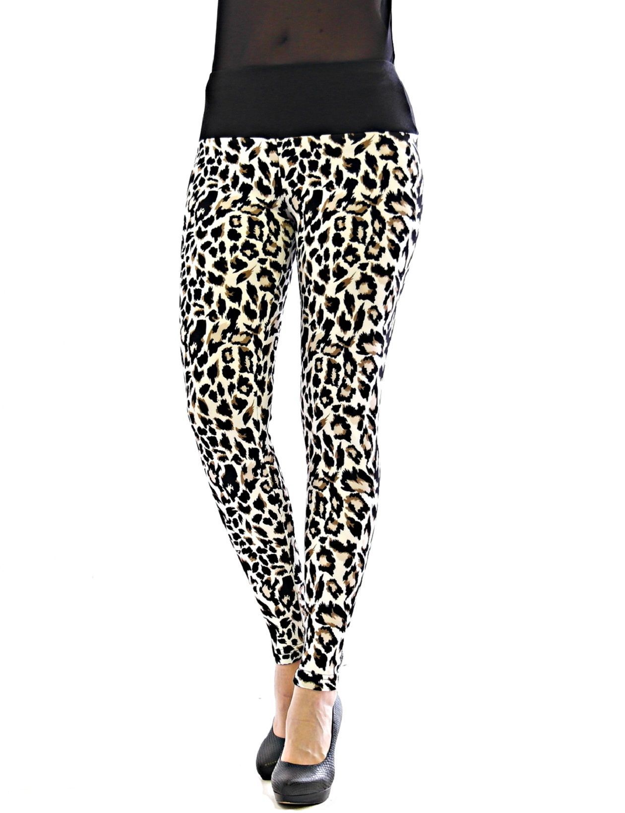 Damen Leggings lang hoher Bund Hose blickdicht Leo Leopard Tier-Muster Leggins