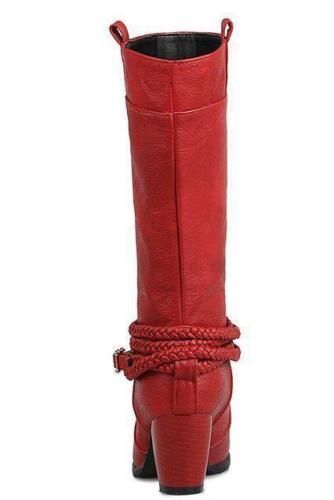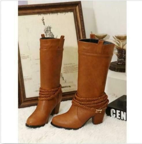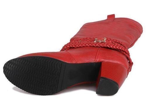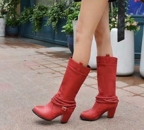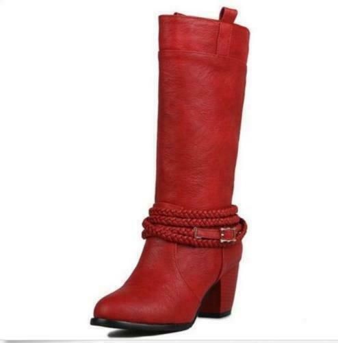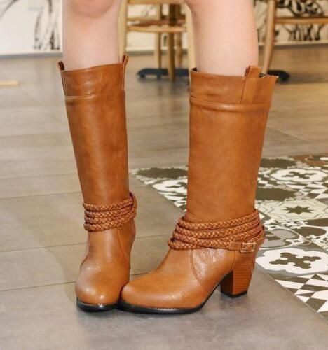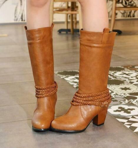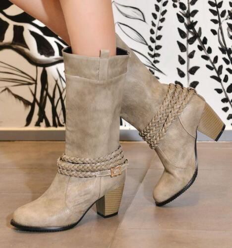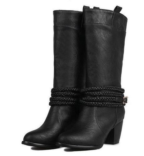 Damen Mid Calf Stiefel Block Katzchen Absatze sub zum Anziehen Stiefel Mode Schuhe N1