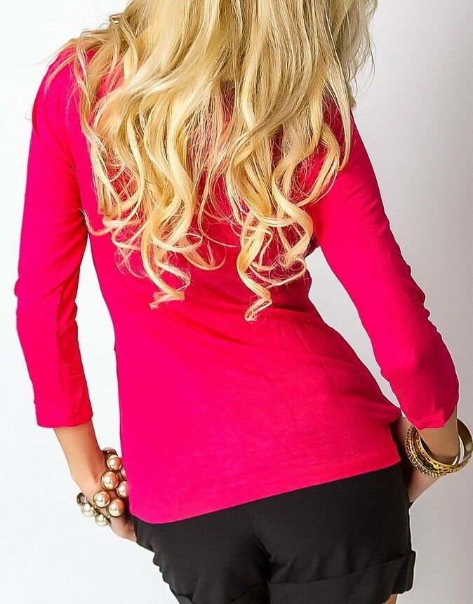 Damen MiSS V Shirt Wickel Look Top Tribal Print pink schw gold M/ L 36/38