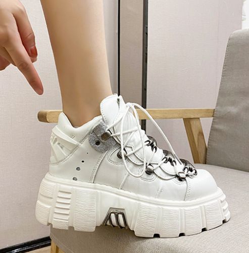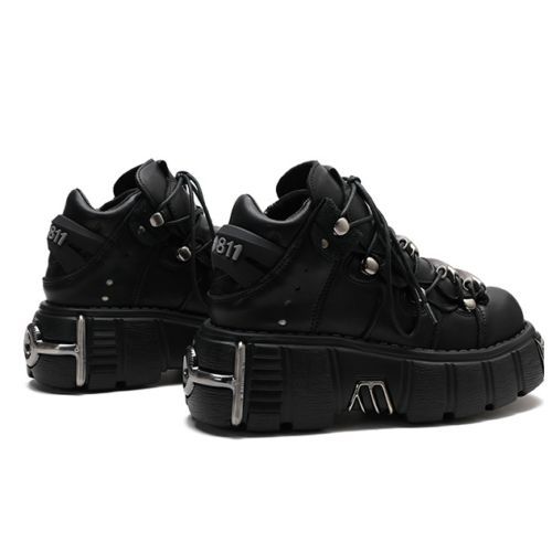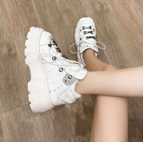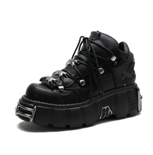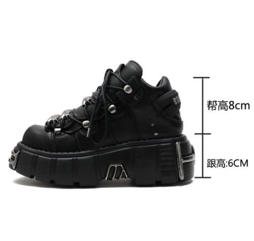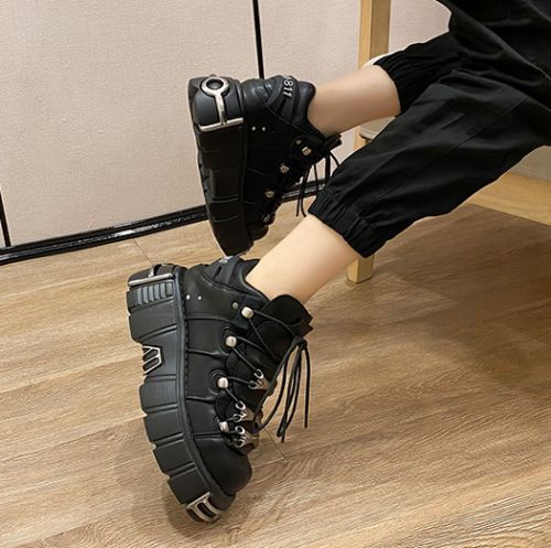 Damen Mode Leder Goth Punk Militar Stiefeletten Biker Schuhe UK N1