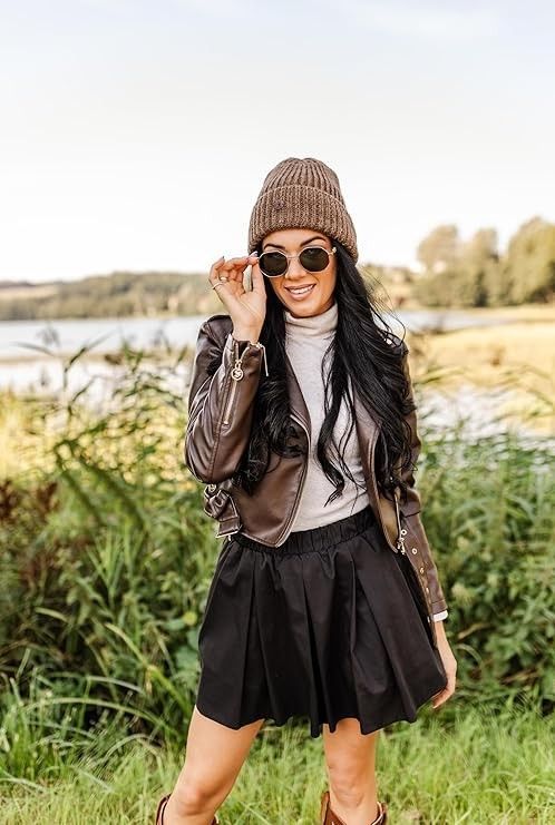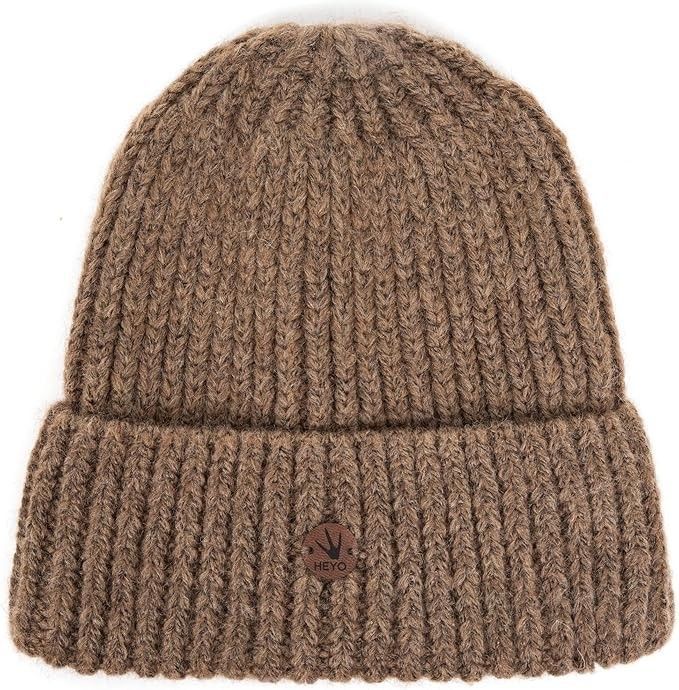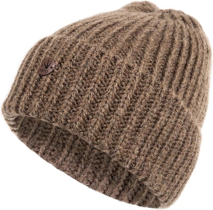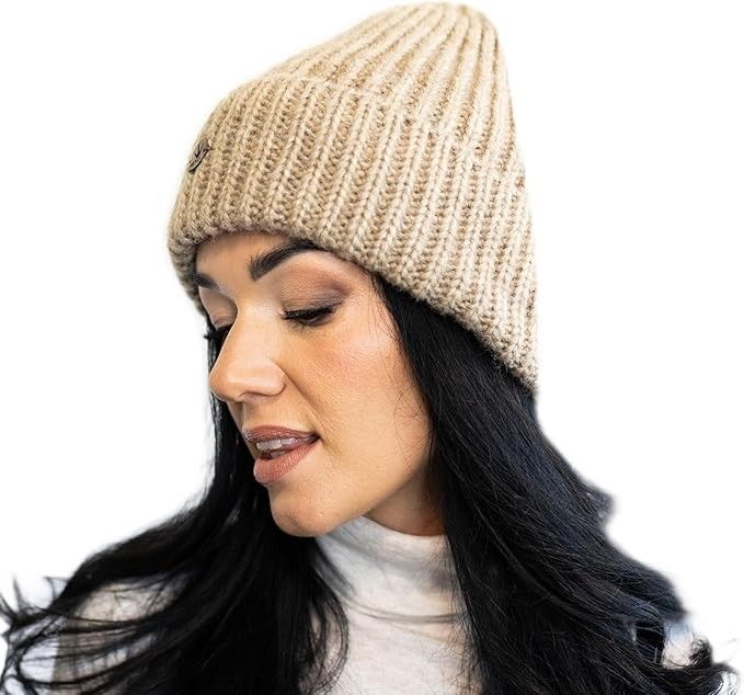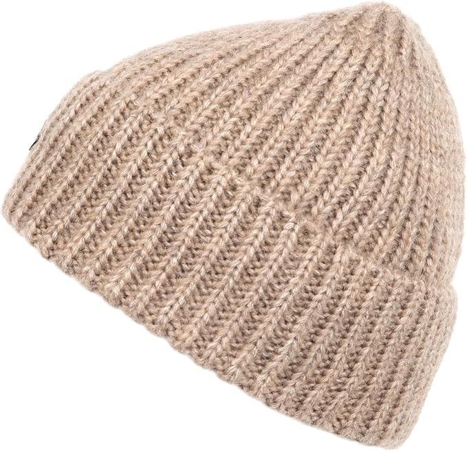 Damen Mütze Winter Beanie aus Wolle warme Strickmütze Wollmütze mit Umschlag