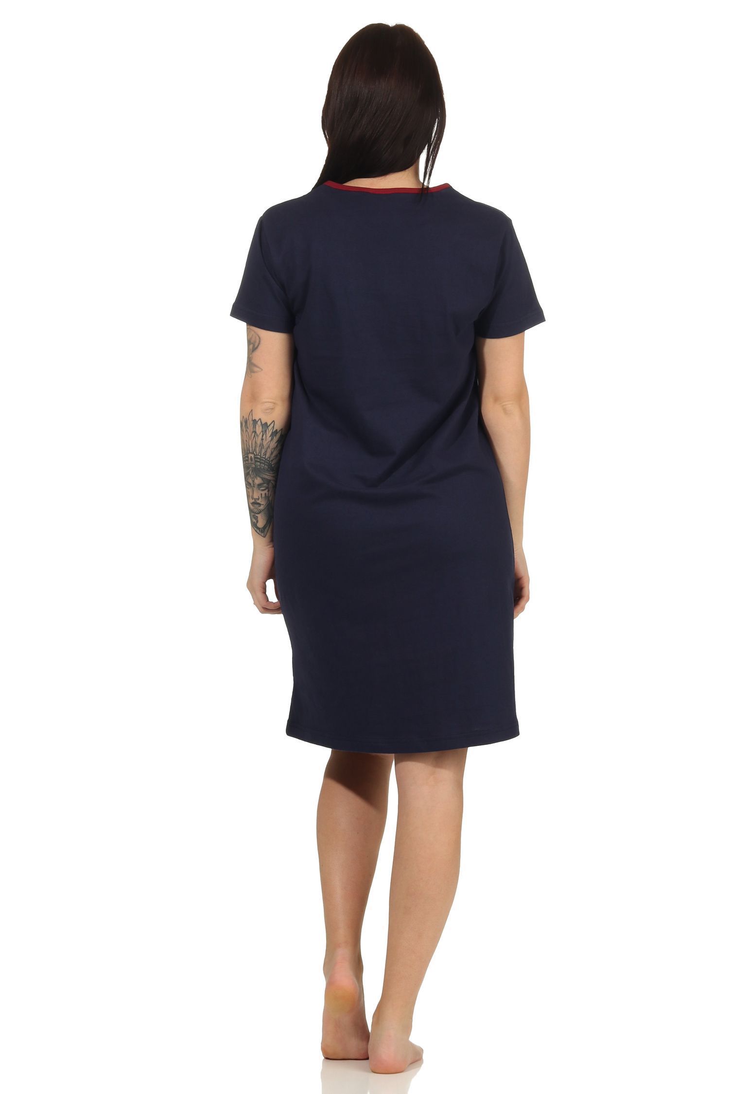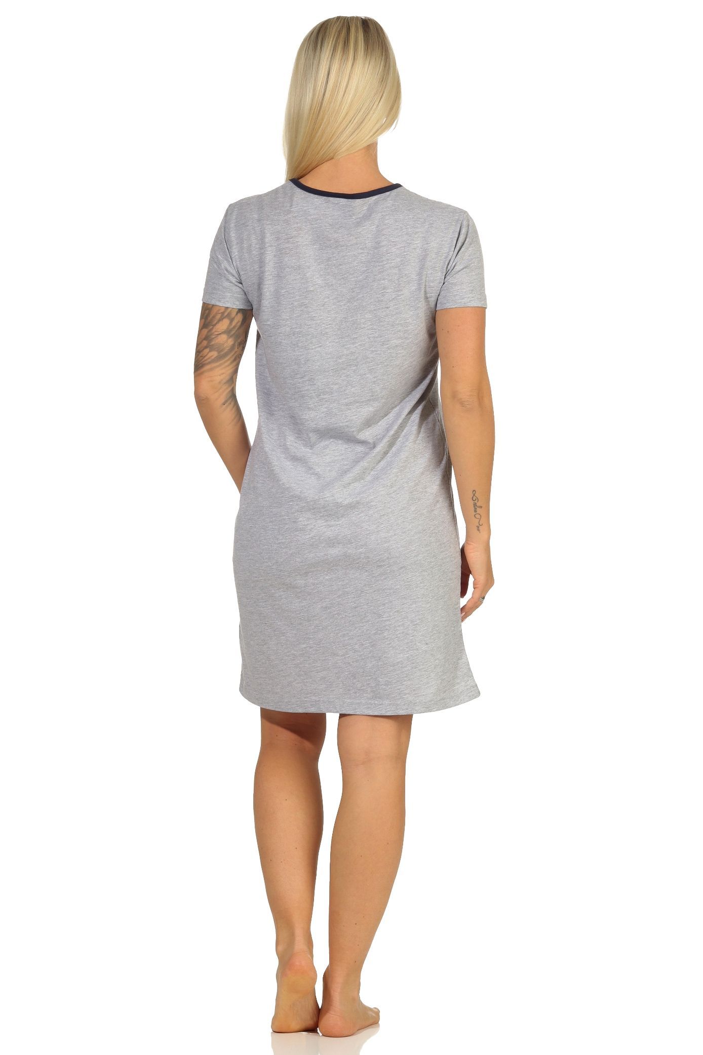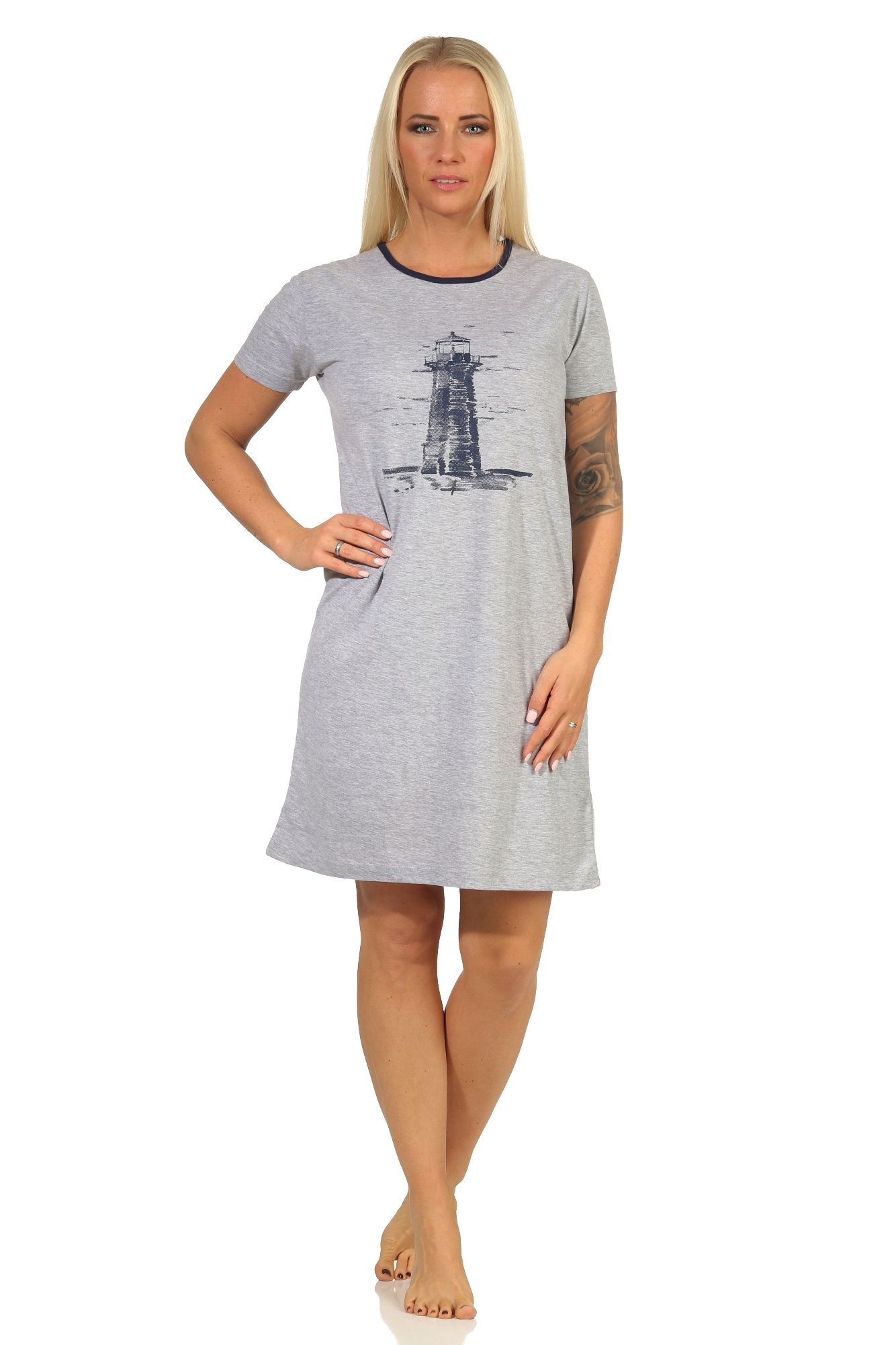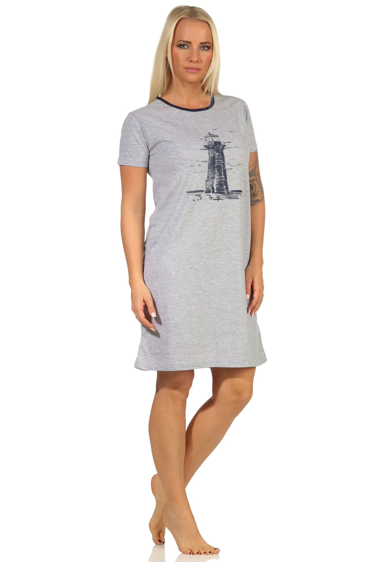 Damen Nachthemd kurzarm im maritimen Look und mit Leuchtturm als Motiv - 715