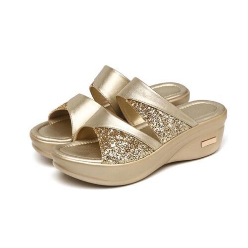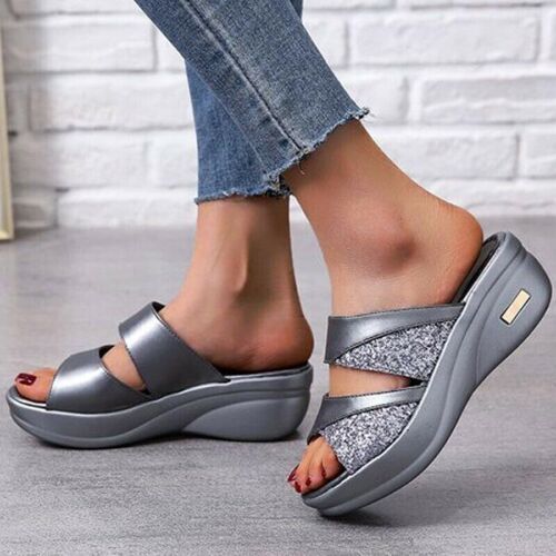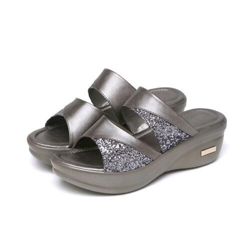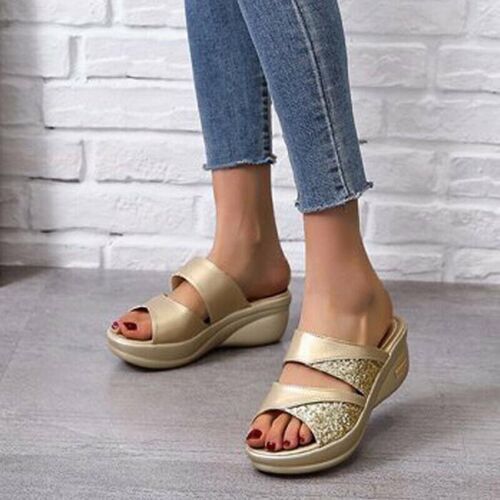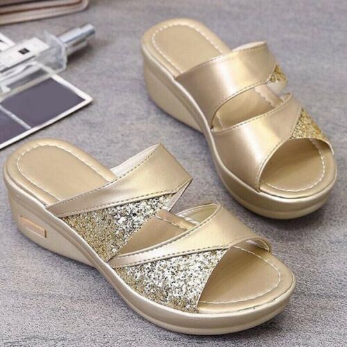 Damen Offen Mules Slip On Sandalen Schuhe Sommer Keilabsatz Freizeit Hausschuhe