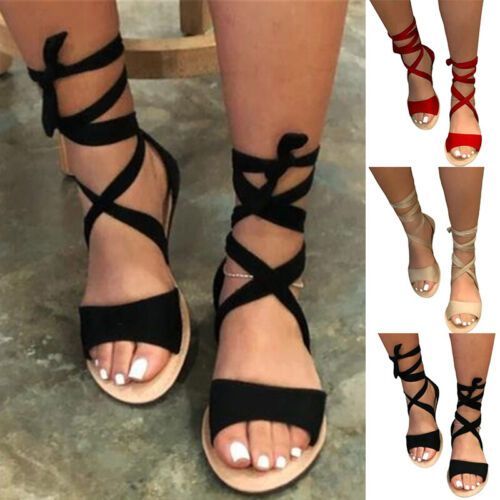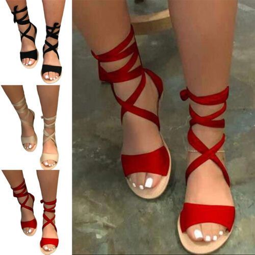 Damen Offene Zehe Gladiatorensandalen Damen Sommer Bequeme Spitze Flache Schuhe