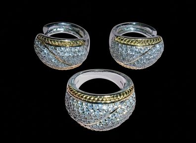 Edler GUEL Silber 925er Statement-Bandring Gr.53, Zirkonia, teilvergoldet 11,9g #1041