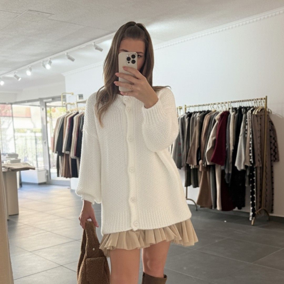 Damen Oversize Strickjacke Amanda Weiß Onesize XS-XL, Frauen Strick Jacke Frau