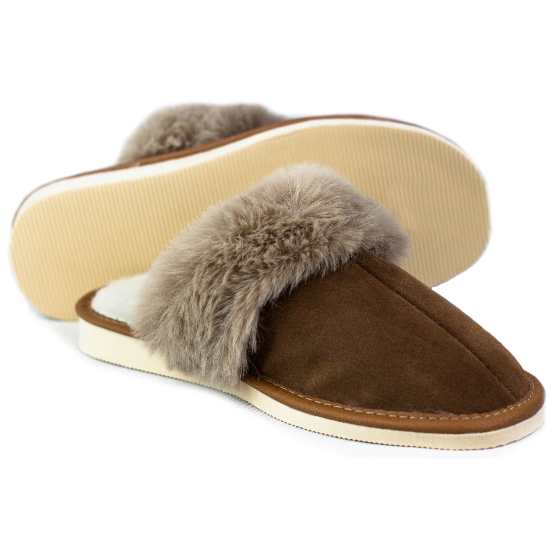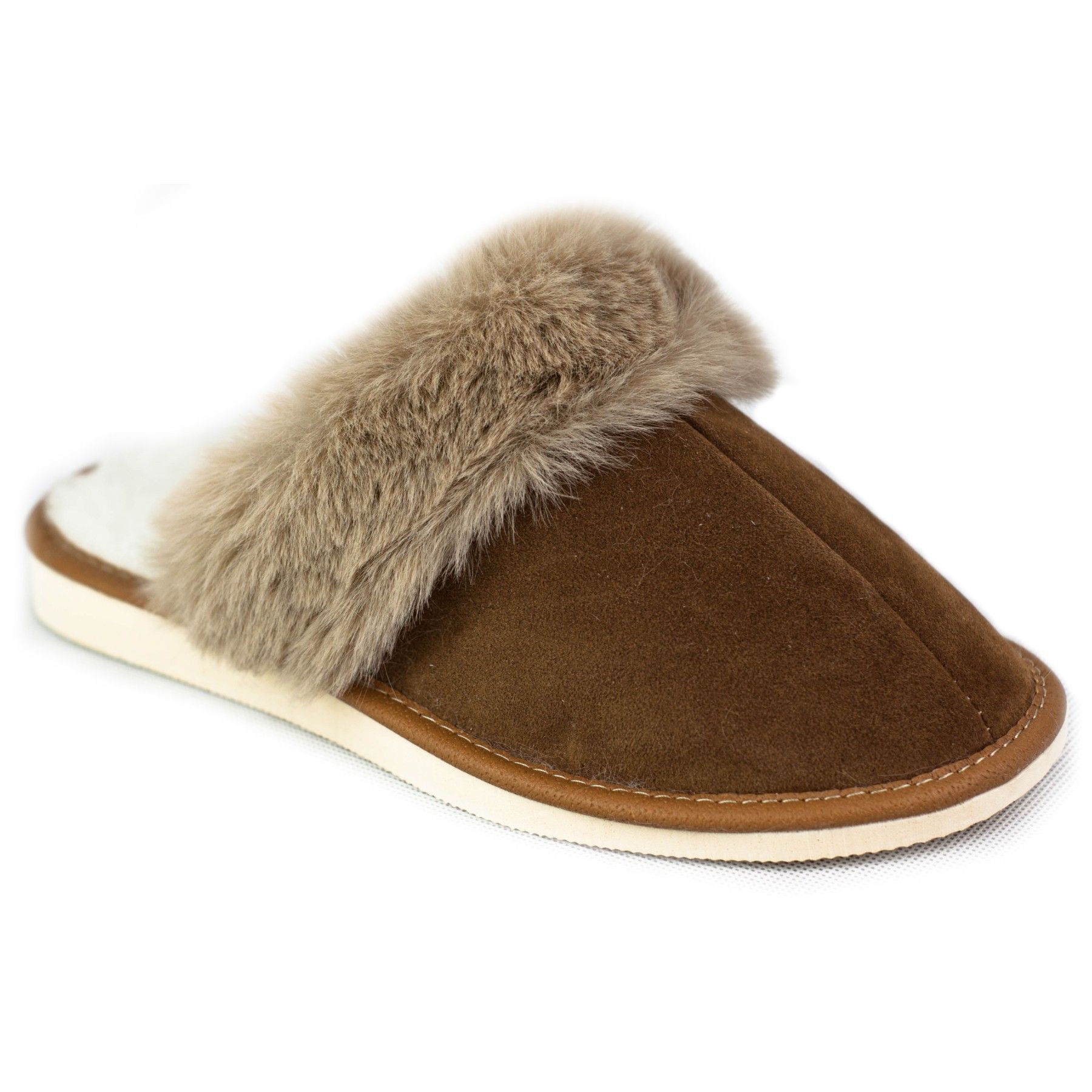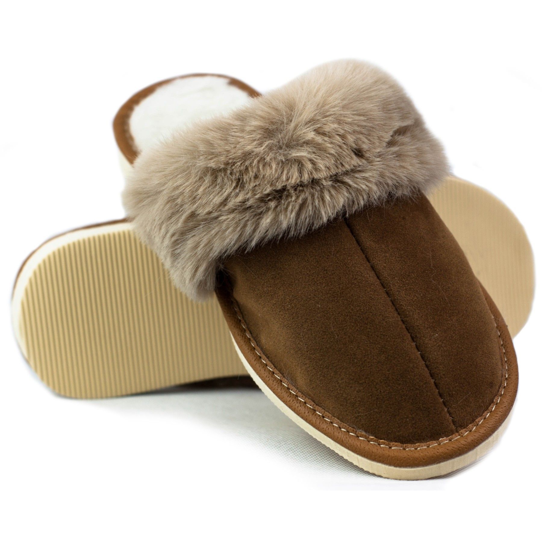 Damen Pantoletten leichte Pantoffeln Wildleder warme Hausschuhe Fell Plüsch Winter