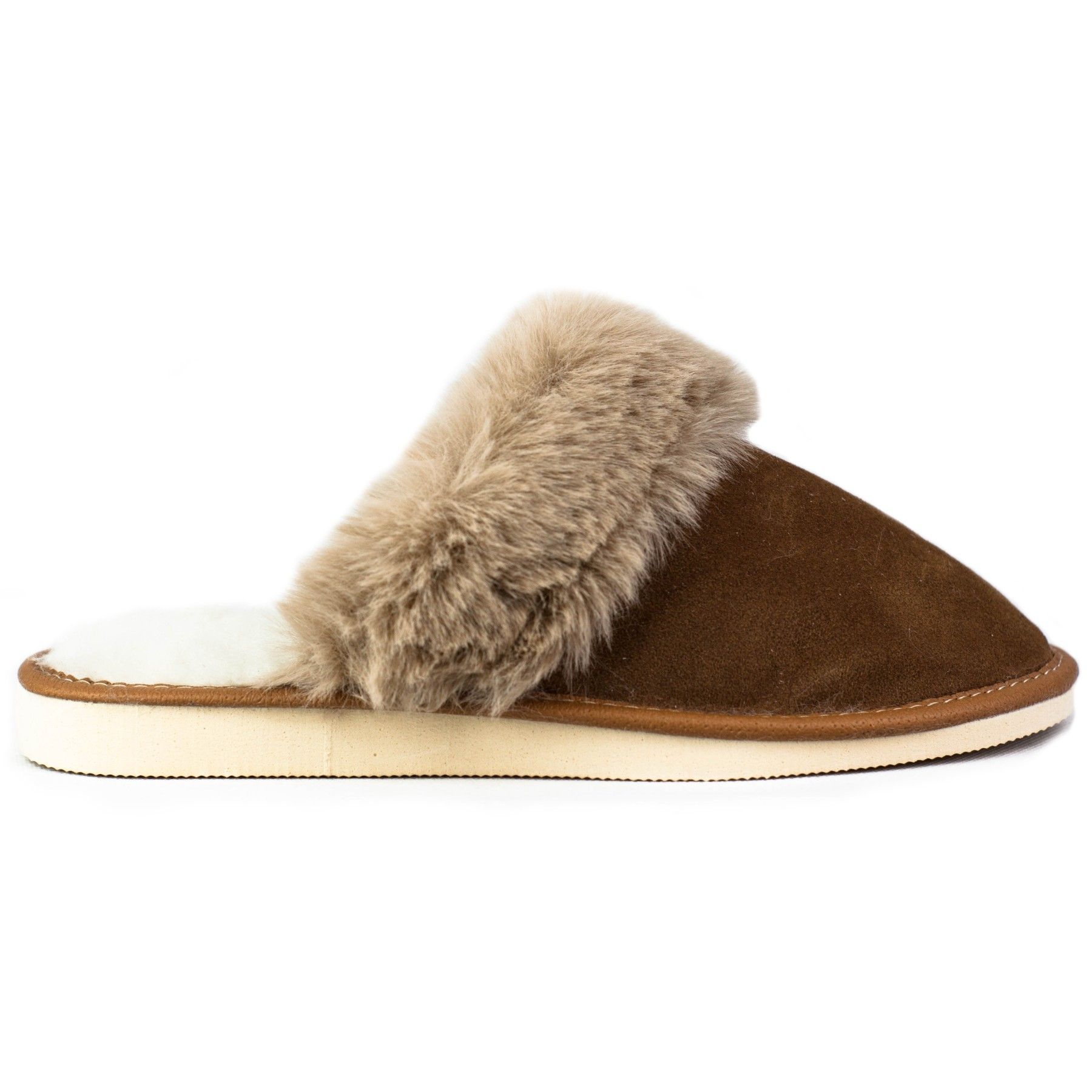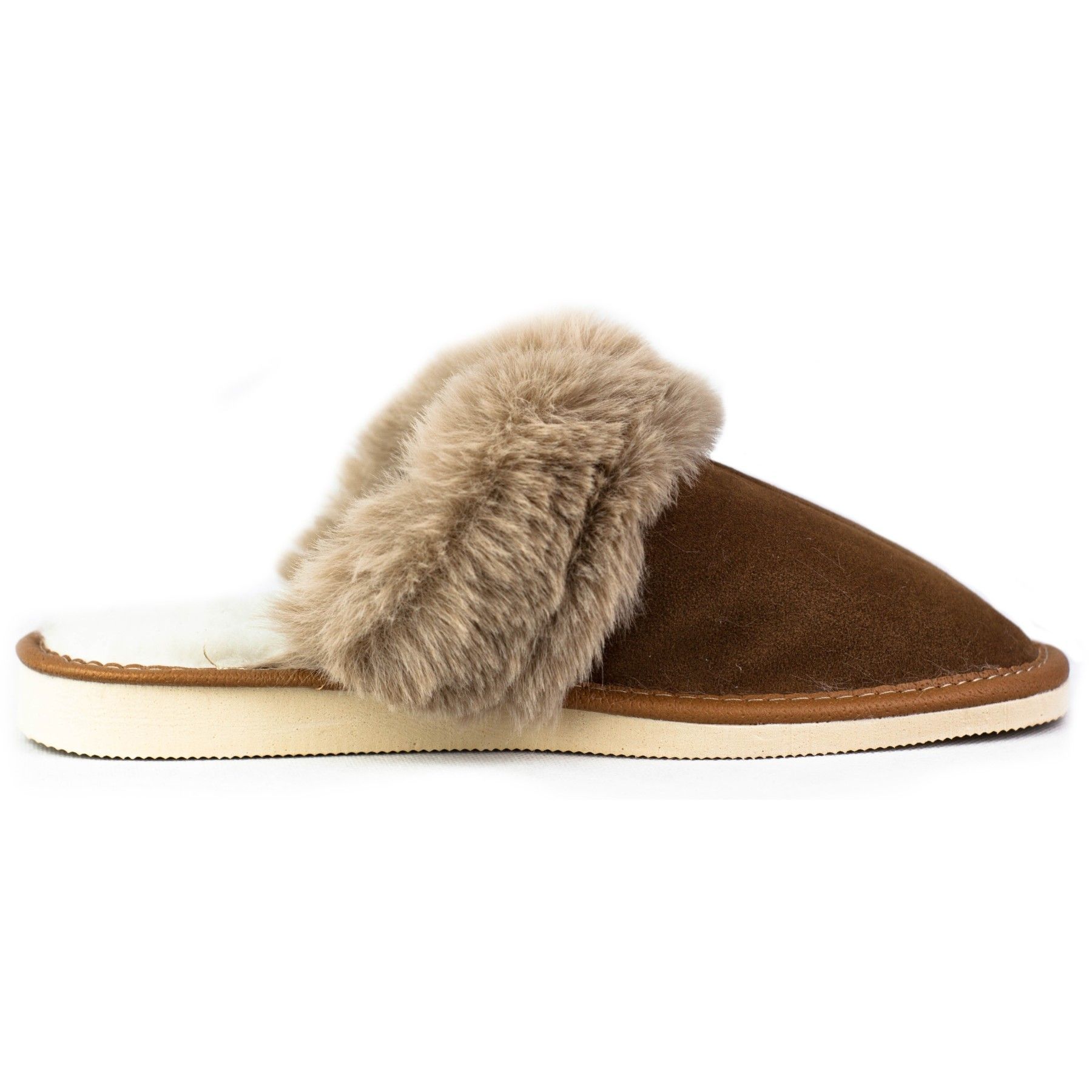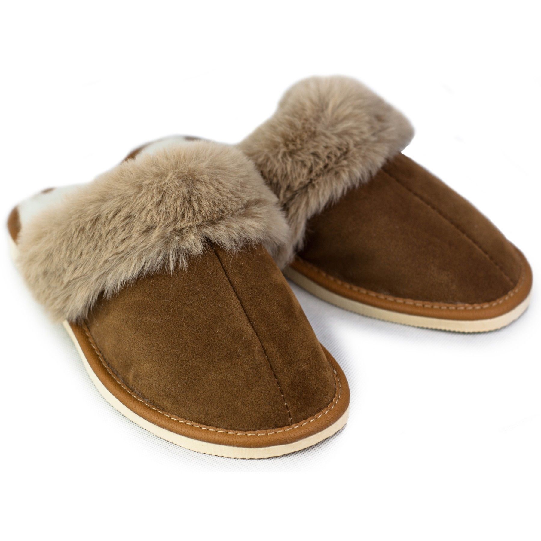 Damen Pantoletten leichte Pantoffeln Wildleder warme Hausschuhe Fell Plüsch Winter