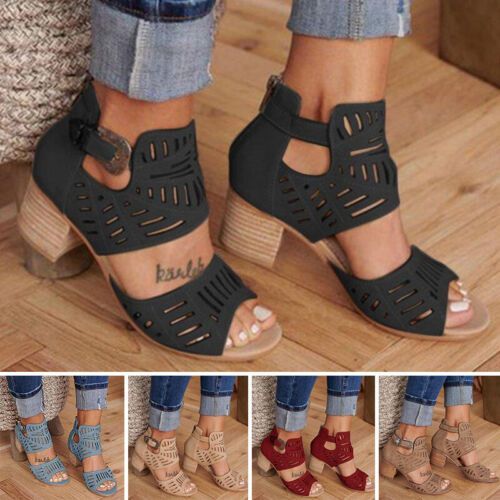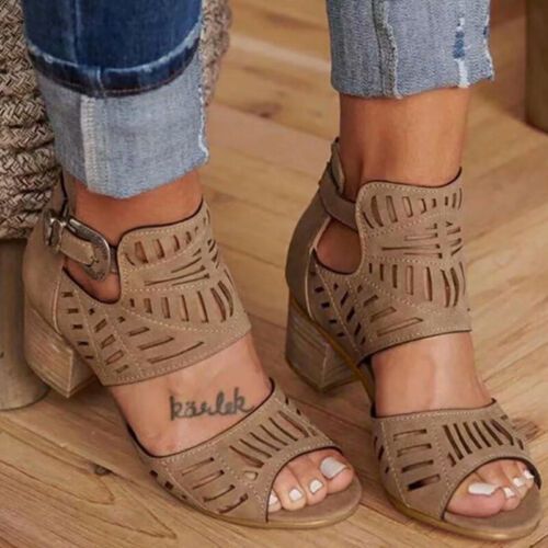 Damen Peep Toe Sandalen Damen Sommer Braut Party niedrige Absatze Schuhe Grobe 2,5-9,