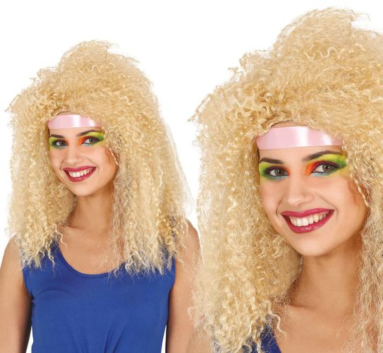 Damen Perücke blond Langhaar Curly Aerobic 80er Disco Party Karneval Fasching
