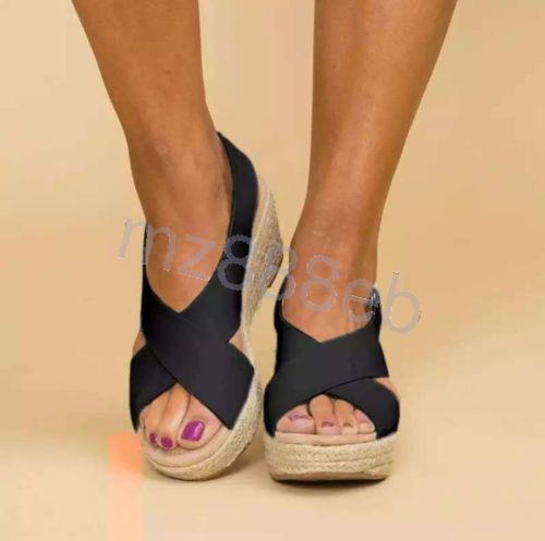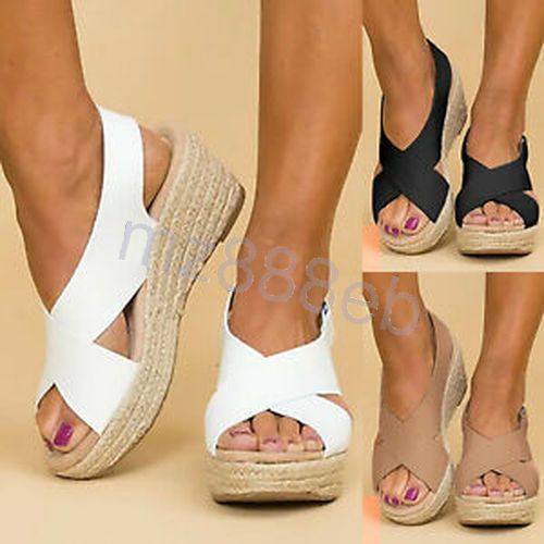 Damen Plateau Keilsandalen Damen Strand Espadrilles Sommer Flatform Schuhe DE