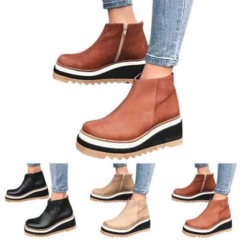 Damen Plateau Stiefeletten mit Keilabsatz Winter Warme Side Booties Schuhe Grobe