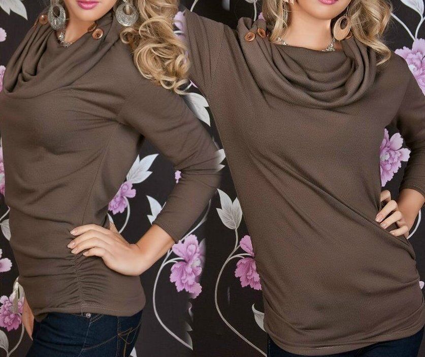 stylischer Shirt Pullover mit breitem Rollkragen Kragen seitlich mit Zierknöpfen versehen unterer Bereich seitlich geraffte Silhouette elastisches Material Eye Catcher Hot & Sexy In-Style Look _____________________________ Einheitsgröße - Uni - Ohne Größe Maße in ungedehnten Zustand locker liege