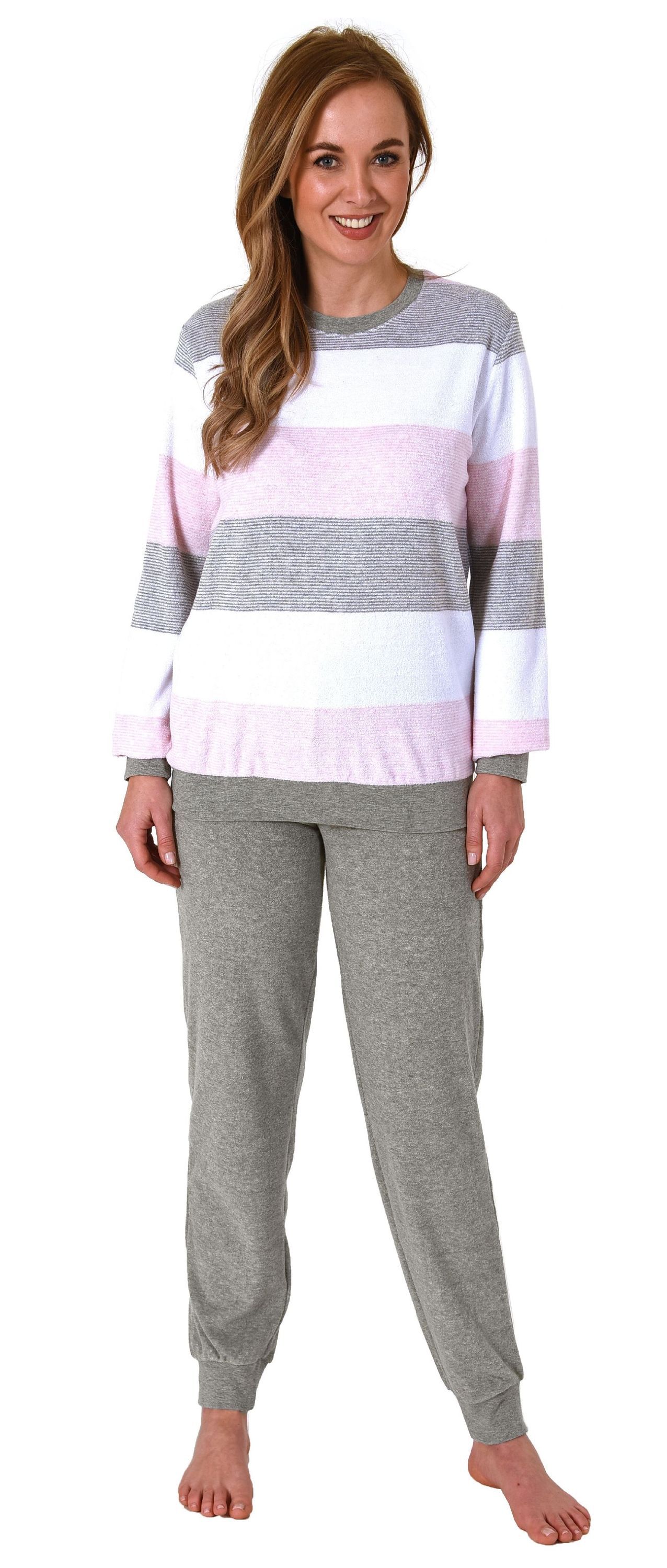 Damen Pyjama mit Bündchen Schlafanzug in Blockstreifenoptik - auch in Übergrössen