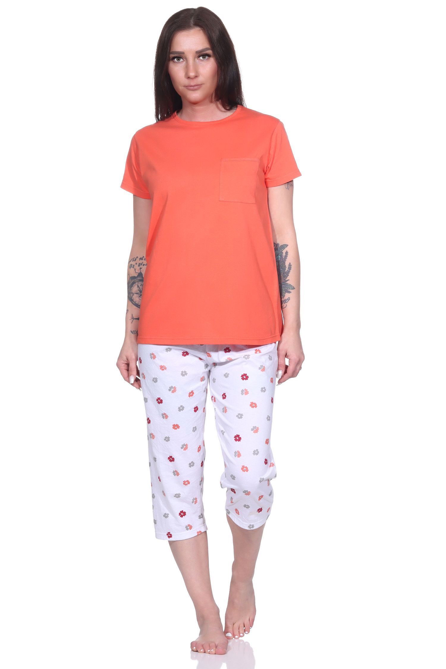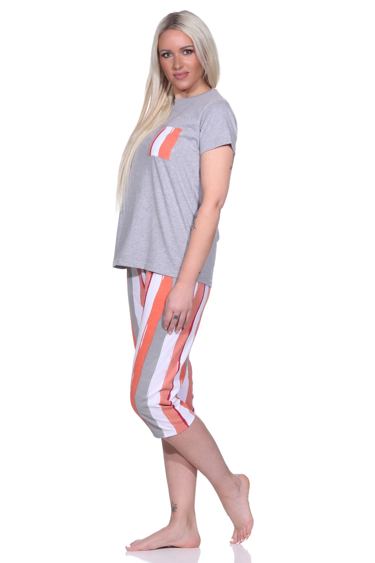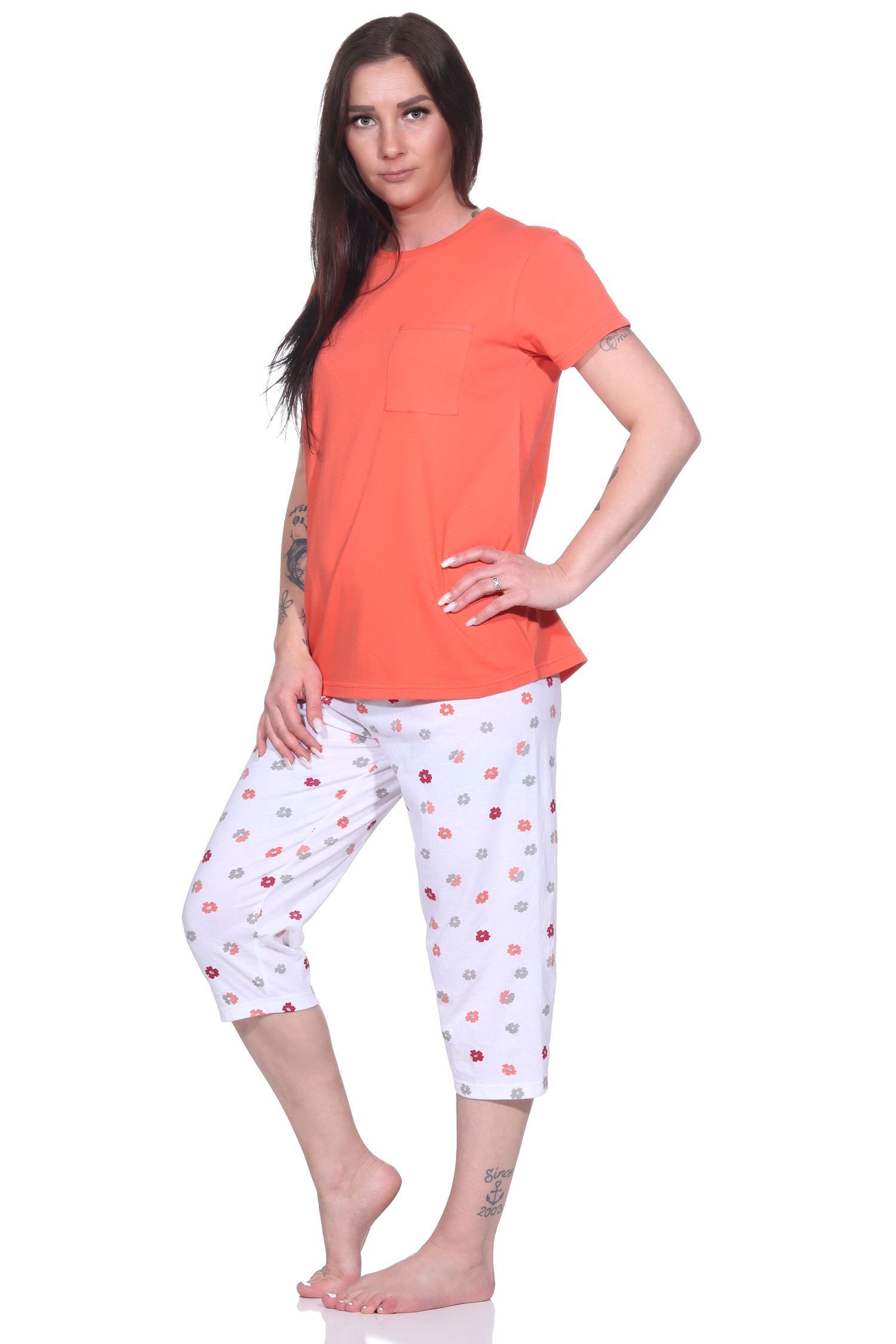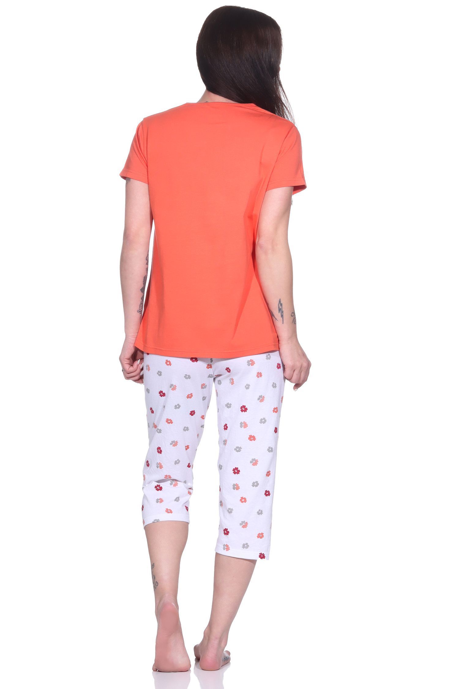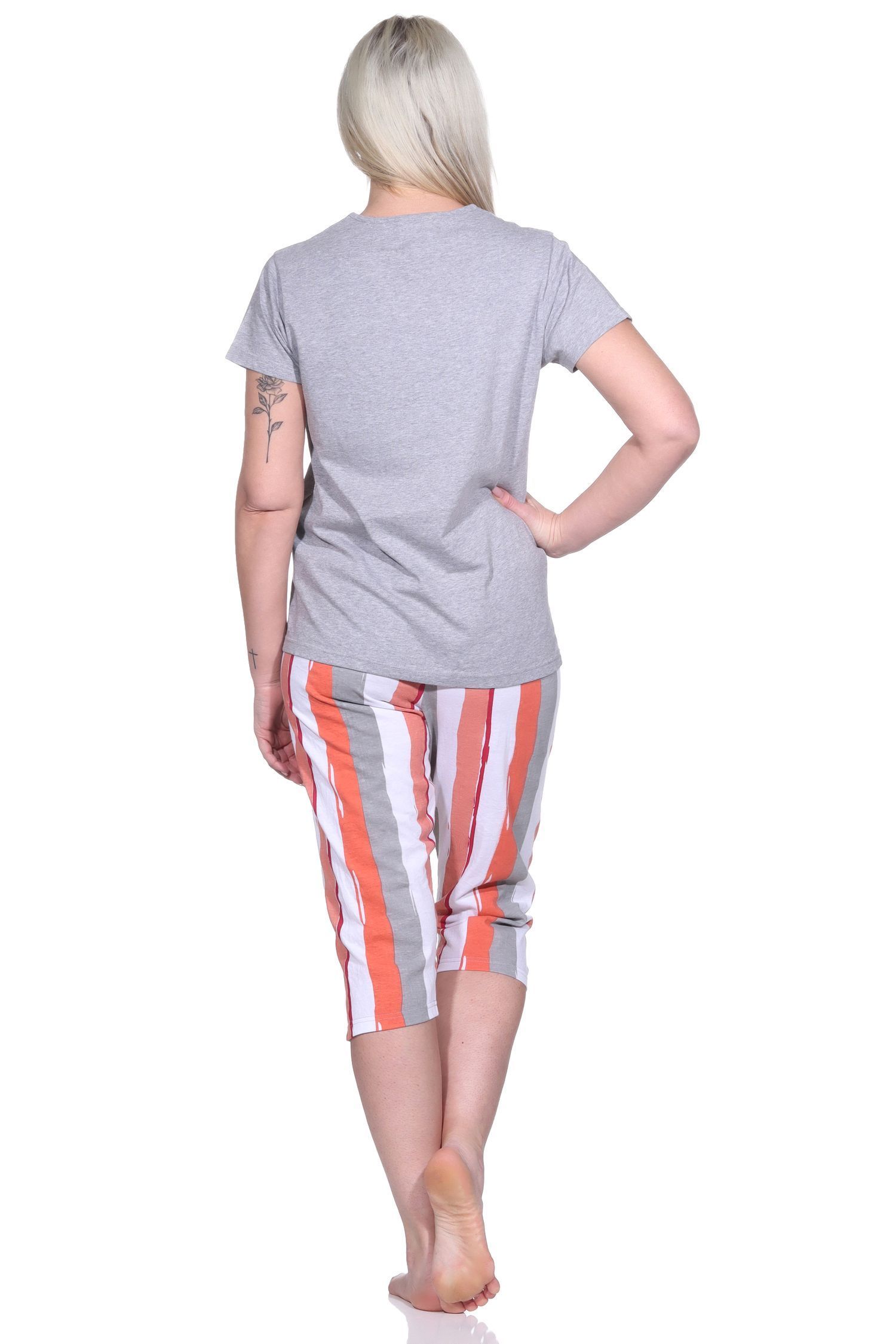 NORMANN Damen Pyjama Schlafanzug mit T-Shirt 3/4 Capri Hose und lässigem Design