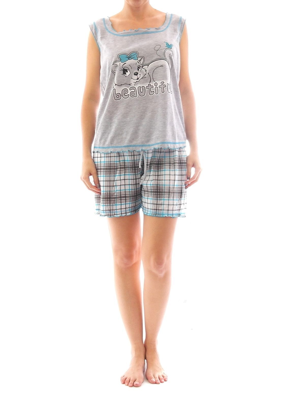 Damen Pyjama Schlafanzug Top Shirt Kurzarm kurze Shorts Motiv BS498