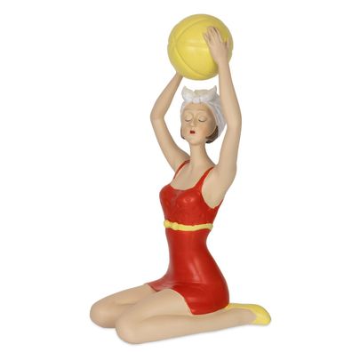• Dekofigur Frau im roten Retro-Badeanzug mit gelbem Ball 22,5?cm - kniende Badefigu
