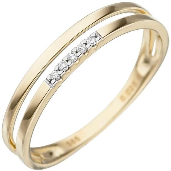 JOBO Damen Ring 585 Gold Gelbgold 5 Diamanten, Goldring
