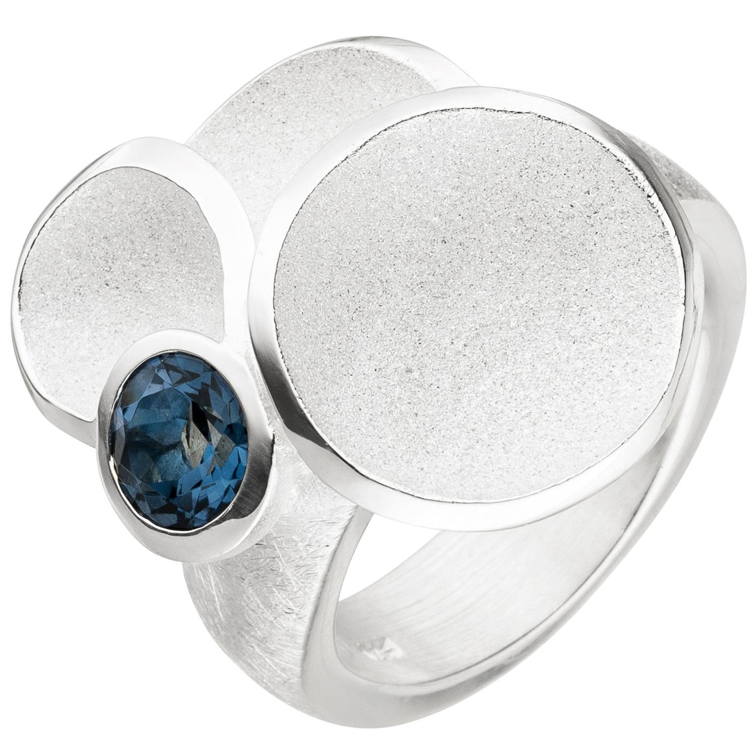 JOBO Damen Ring 925 Sterling Silber matt eismatt 1 Blautopas blau