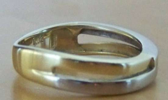 15mm Durchmesser, oben 3mm stark 2g schwer Weißgold und Gelbgolt Im Ring steht 585; 002 ; eine Römische 1 in einem Kreis ein R bin mir aber nicht sicher ist von mir Privat Der Ring wurde nie getragen