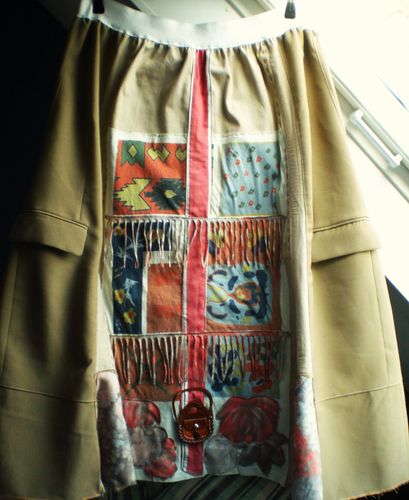 Damen Rock Sand-Braun-Ziegelfarbe-Weiß passt bei Gr.48-50-52-54 mit Gummiband Taillenweite:94-112cm Hüftweite:160cm Länge:86cm Privatverkauf.Keine Garantie und keine Rücknahme.
