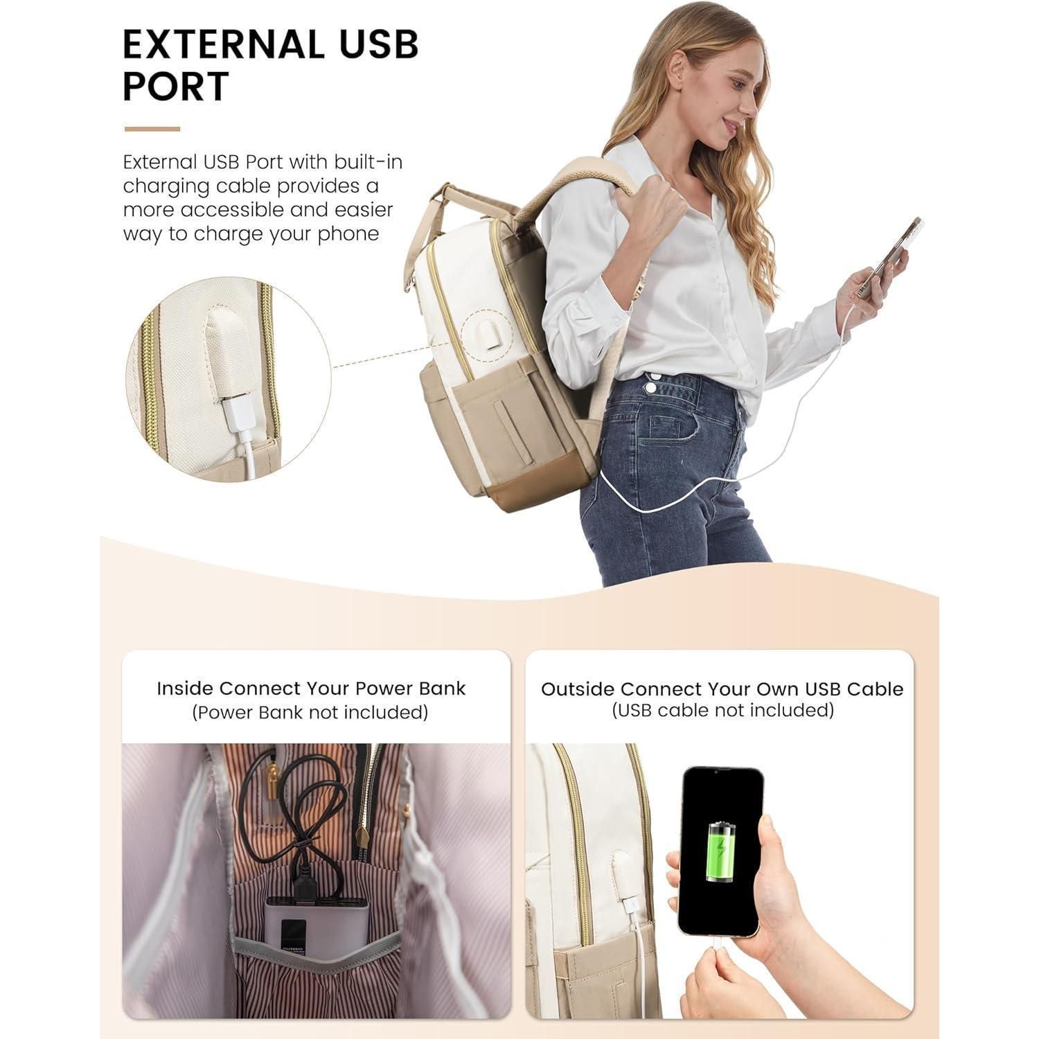 Damen Rucksack 15,6 Zoll Laptop Schulrucksack Reiserucksack Beige