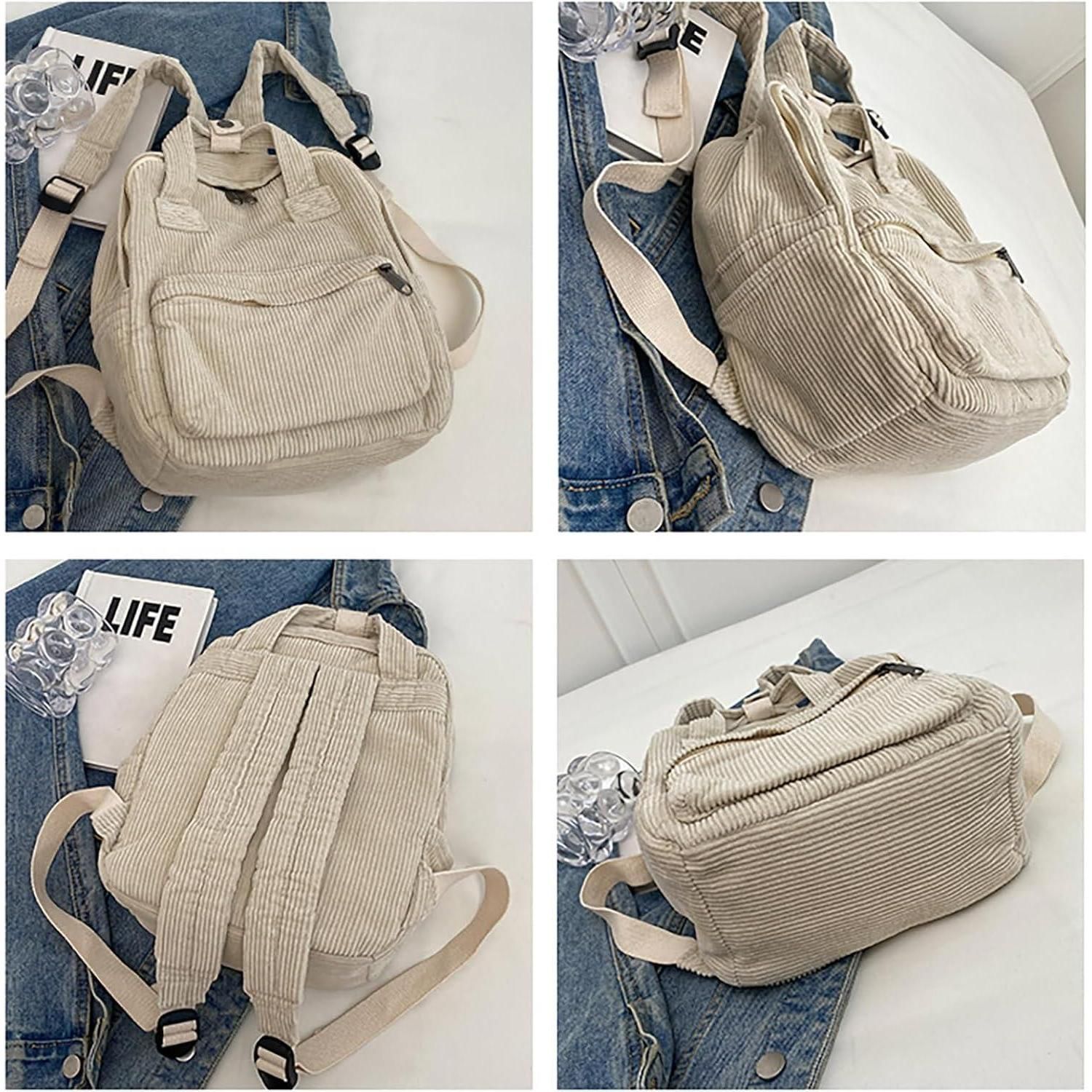 Damen Rucksack Klein Cord Cityrucksack Beige 10l Kapazität