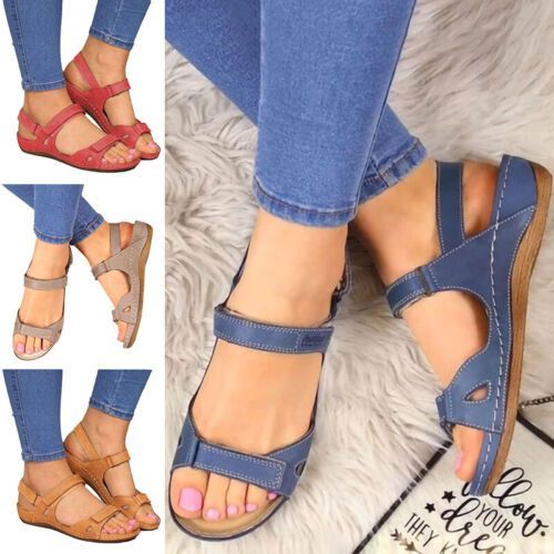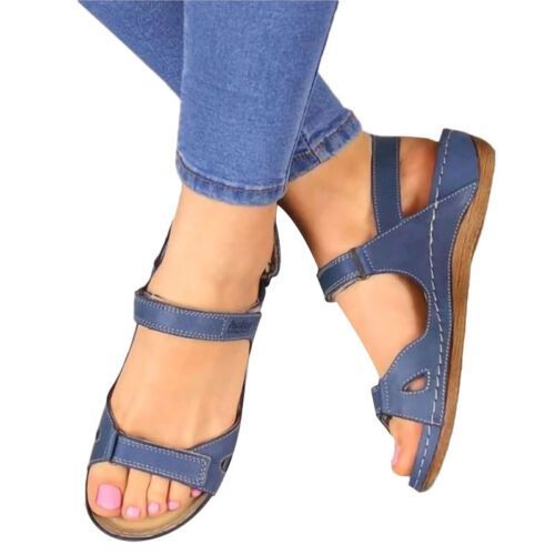 Damen Sandalen Fesselriemen Flache Sandale Komfortabel Party Sommer
