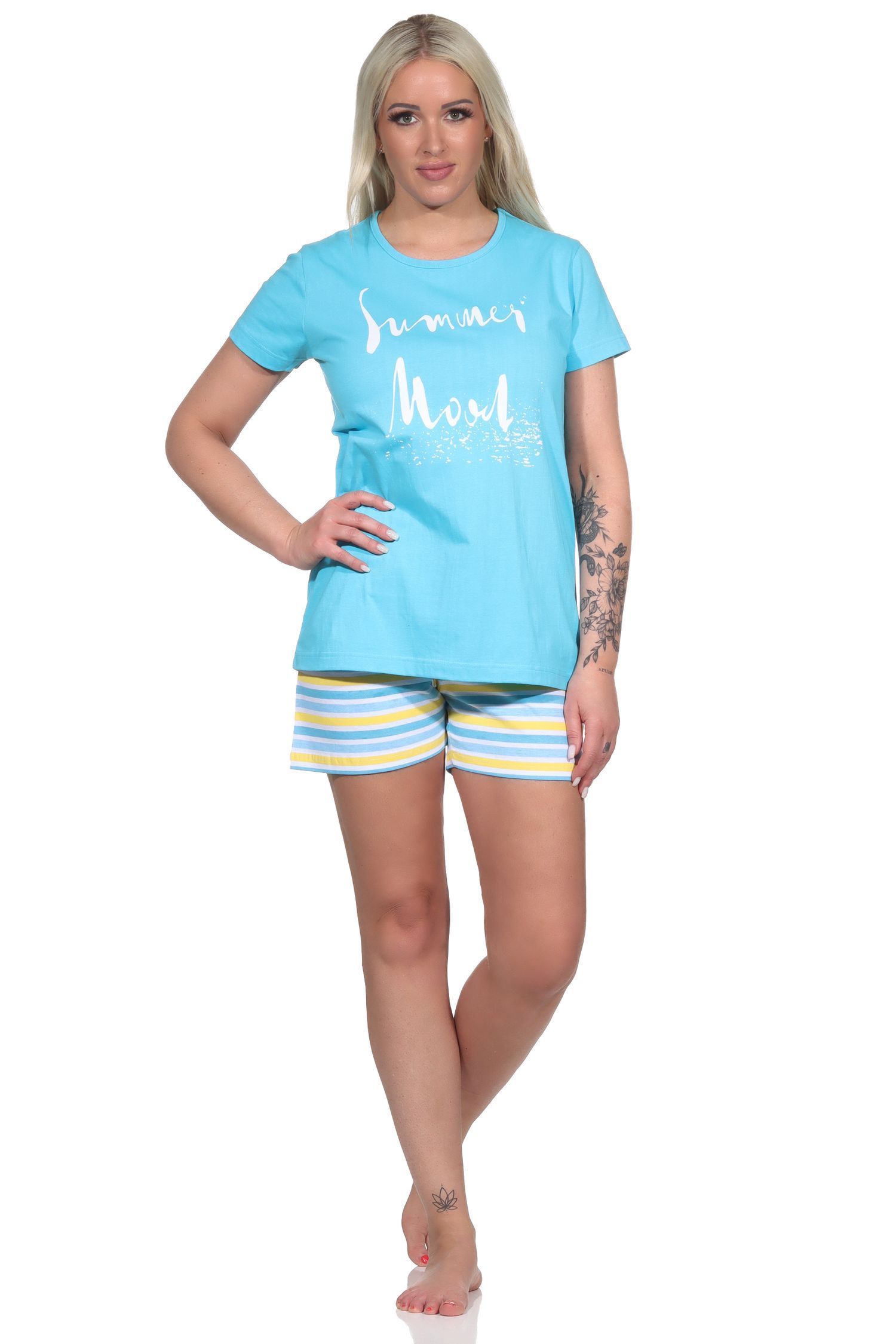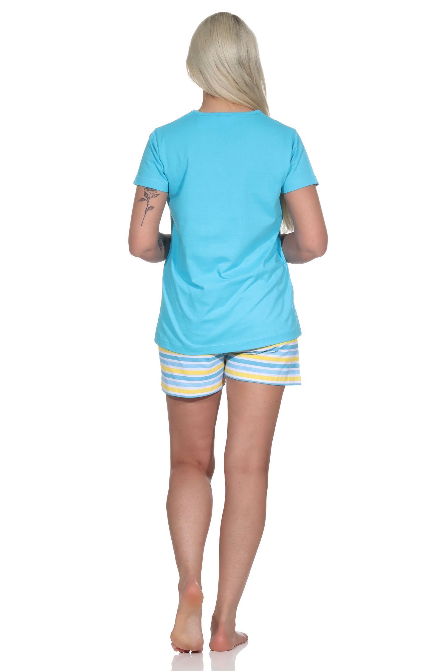 Damen Shorty kurzarm Pyjama mit Front-Print und Ringel-Optik - 122 205 10 752
