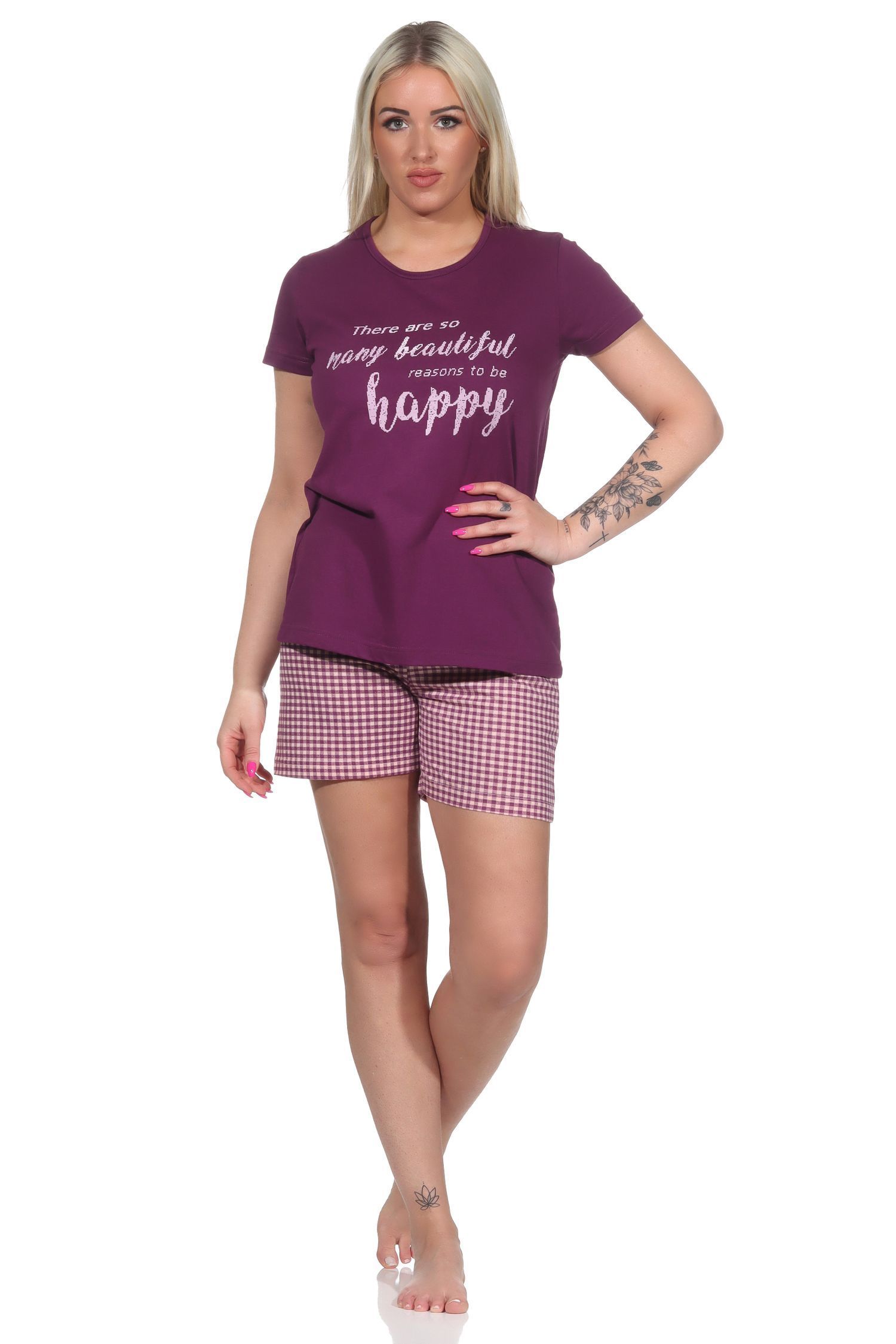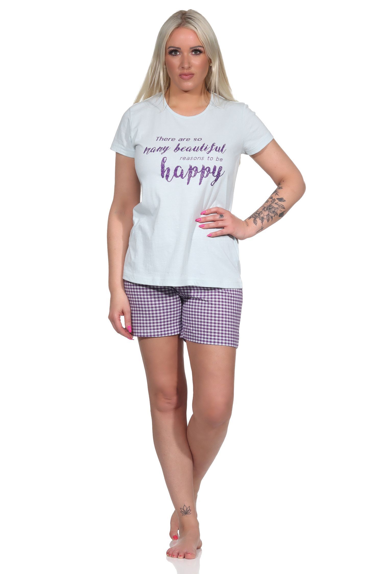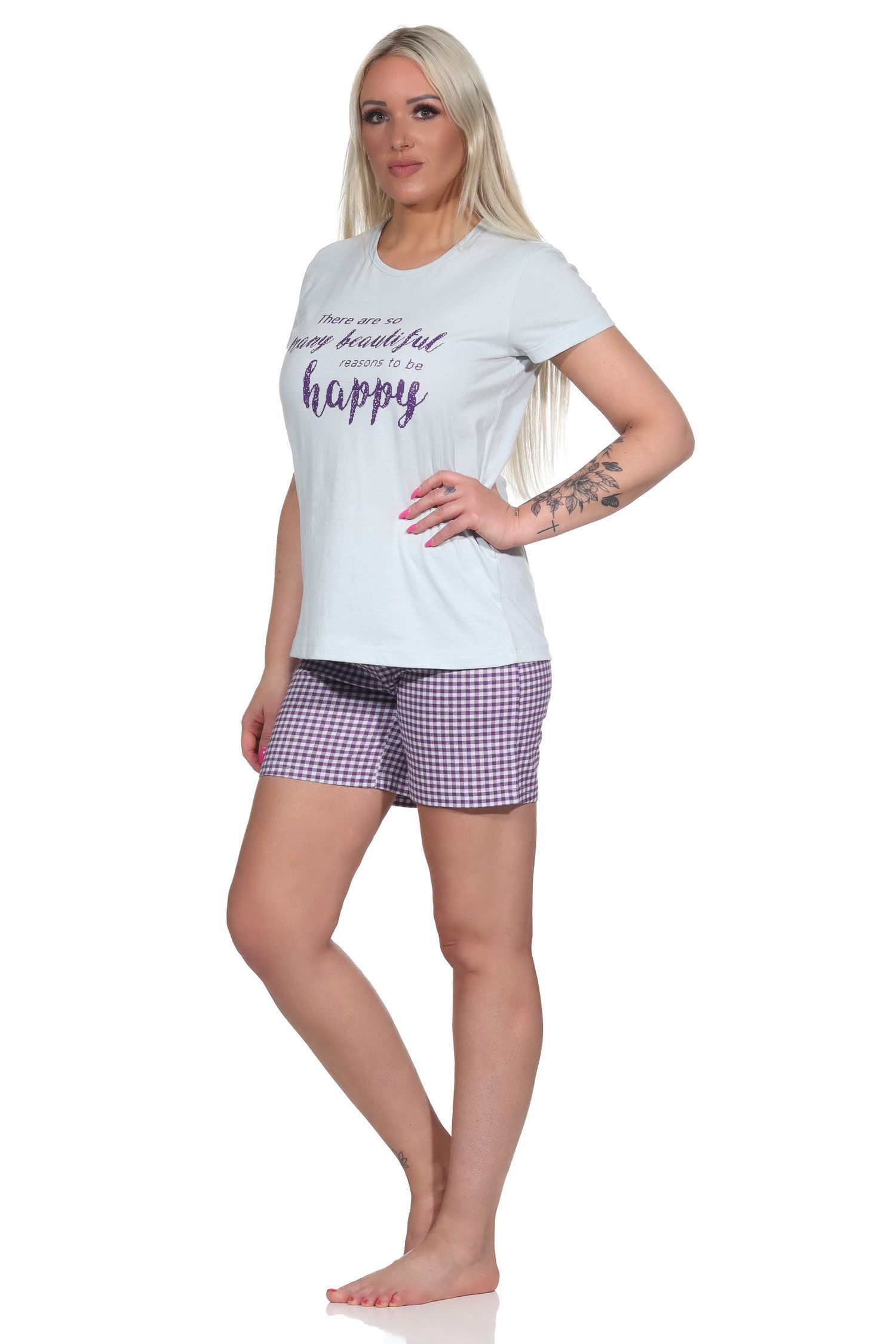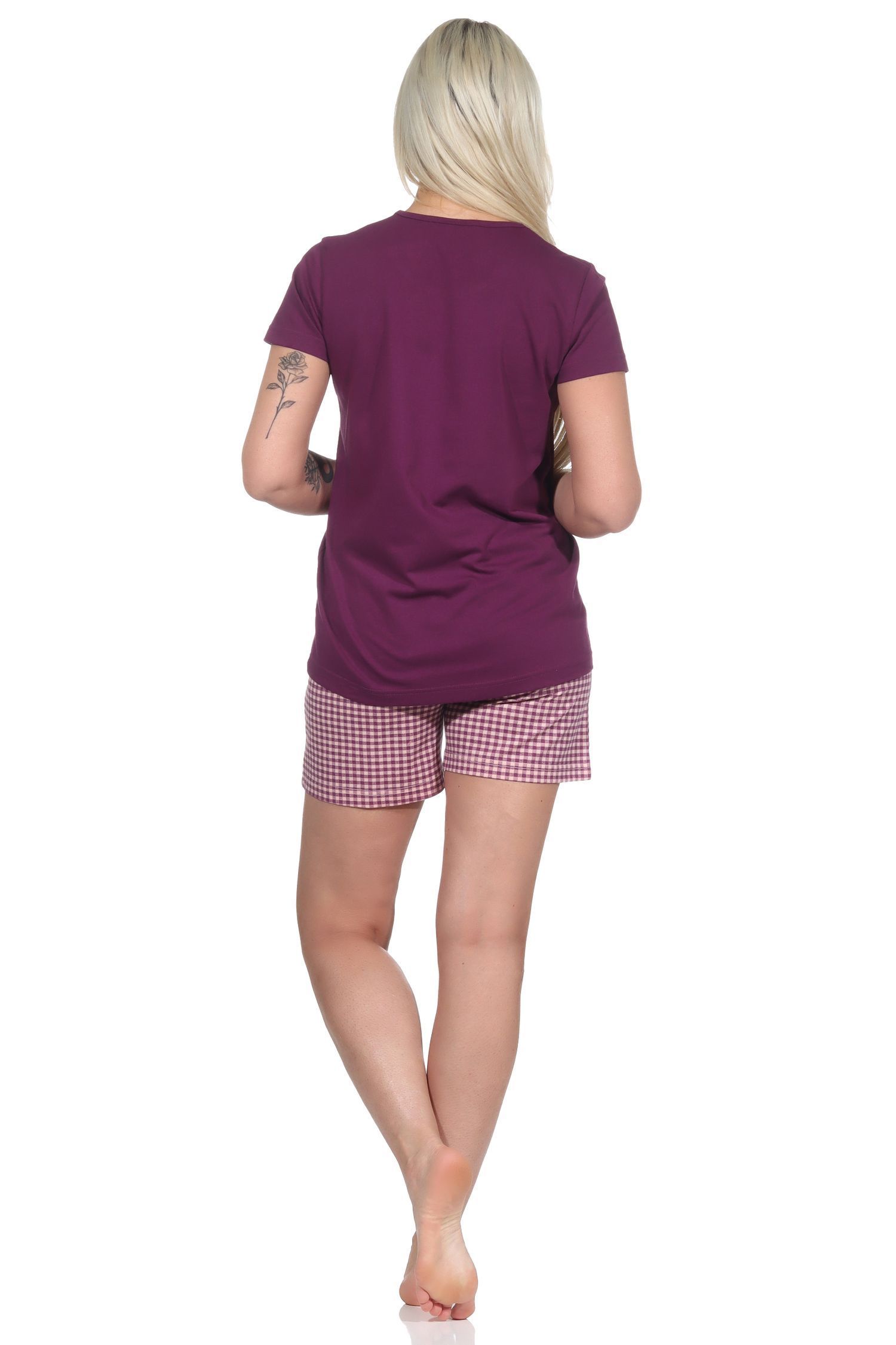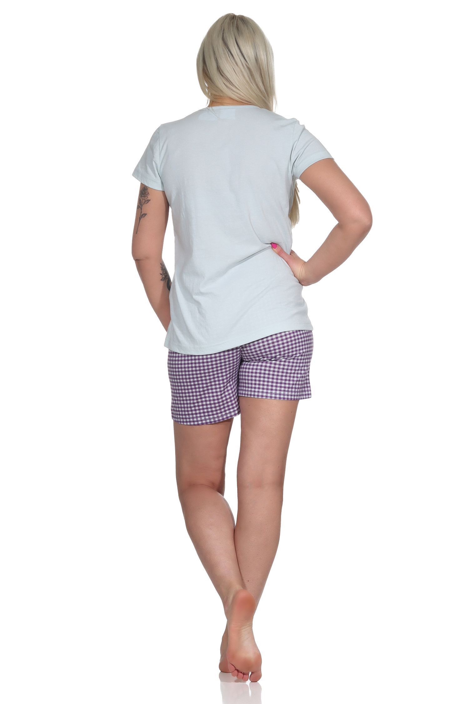 Damen Shorty Pyjama, kurzer Schlafanzug mit karierten Shorts - 112 205 10 734